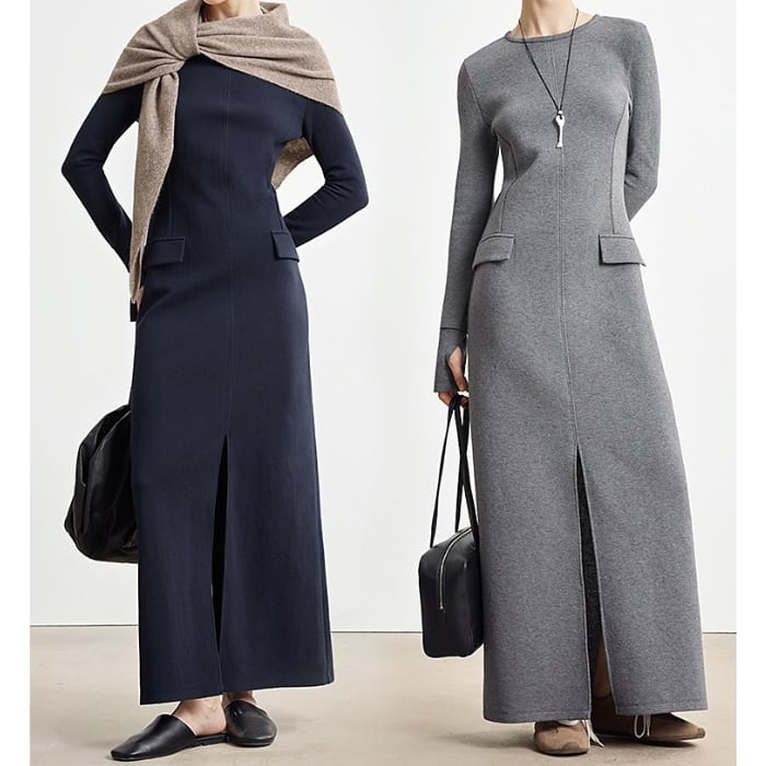 カラーブロックスタンドカラースウェットワンピース[S-XL]