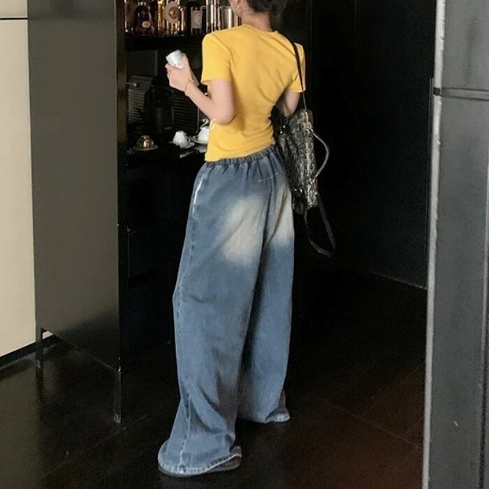 ドローストリングワイドレッグデニムパンツ[XS-XL]
