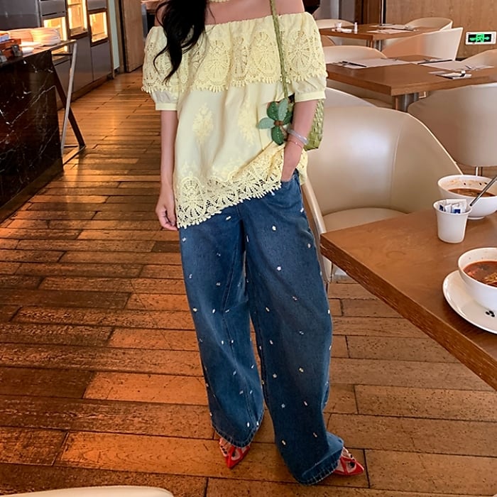 エンブロフラワーカーブデニムパンツ[S-L]