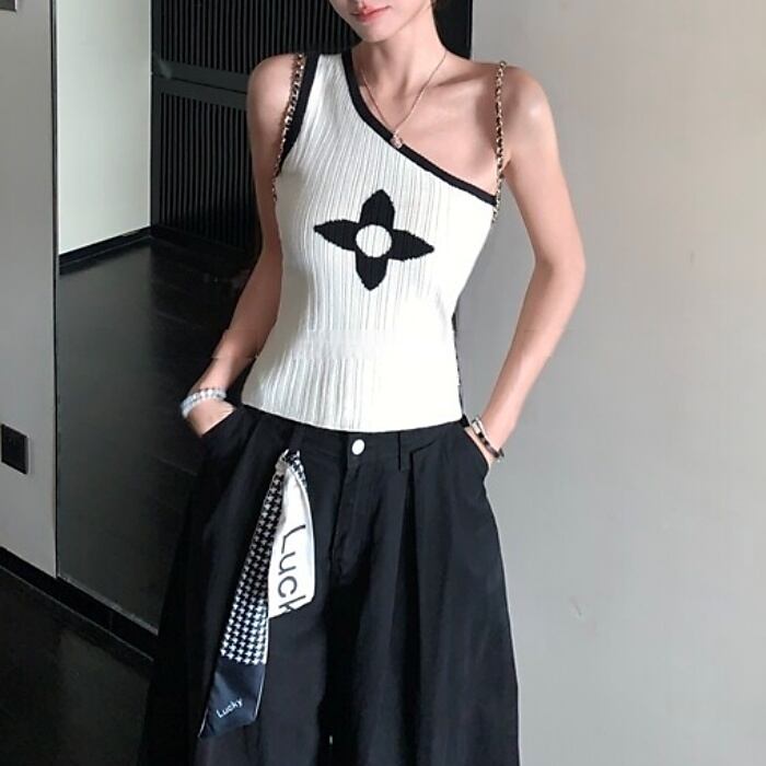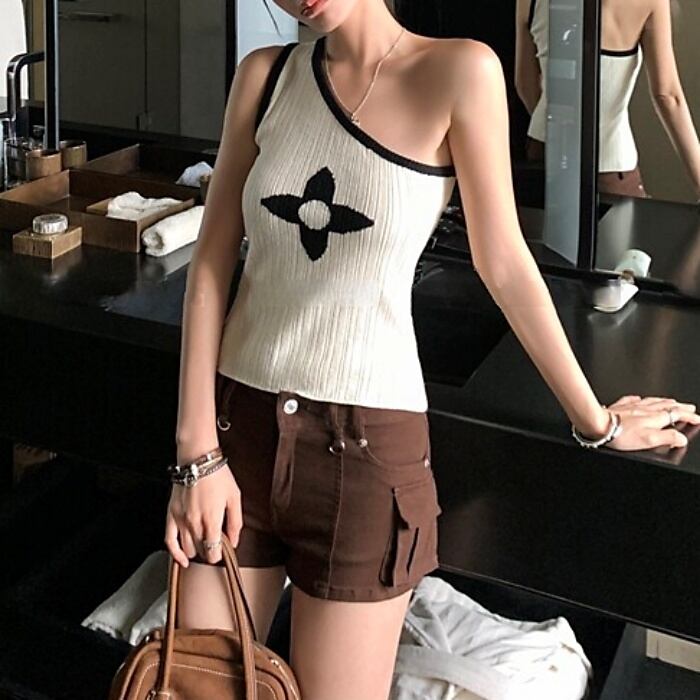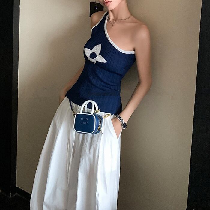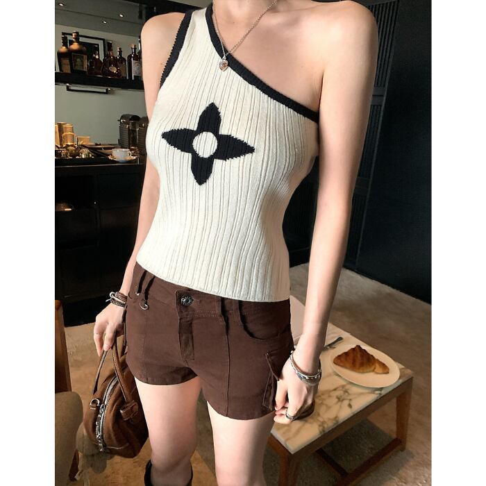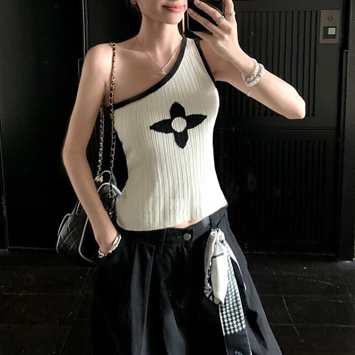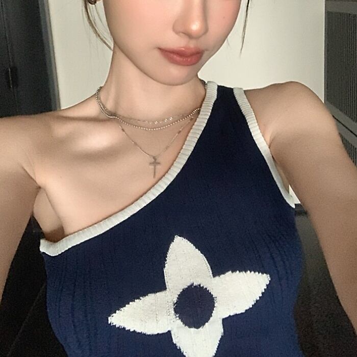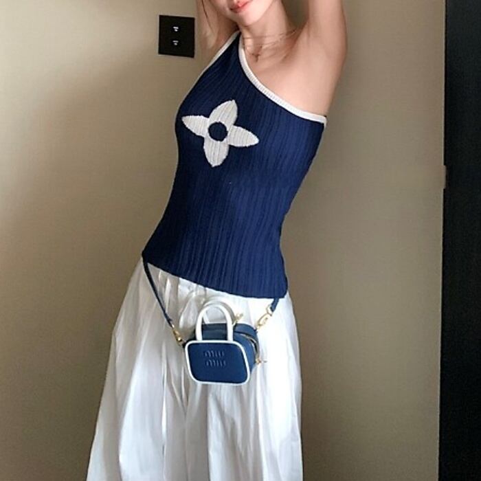 クローバーワンショルダーストレッチニット[S-M]