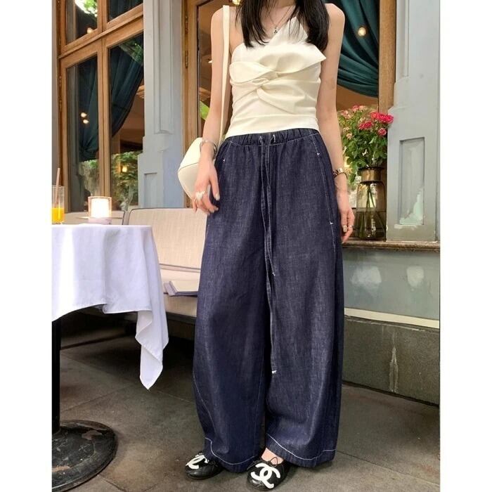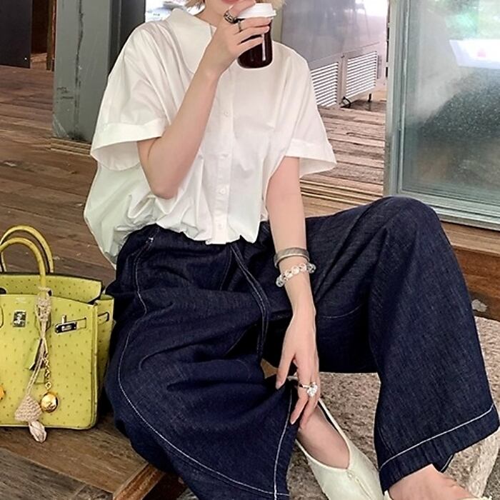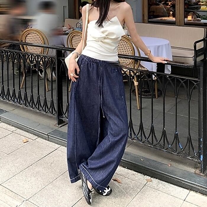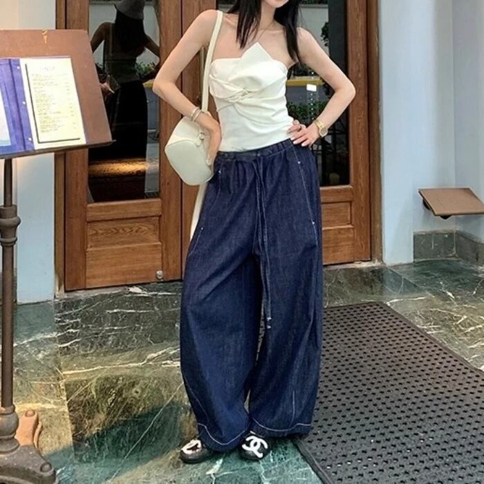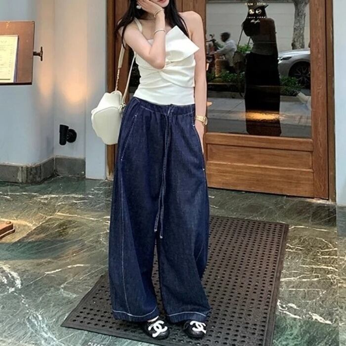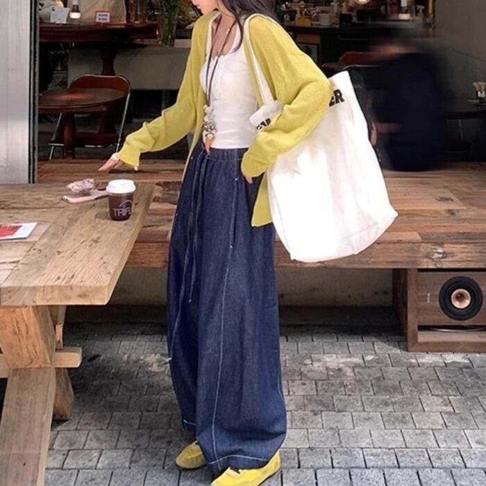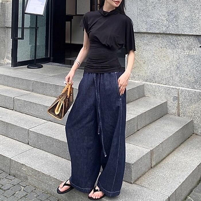 シミターワイドレッグデニムパンツ[XS-XL]