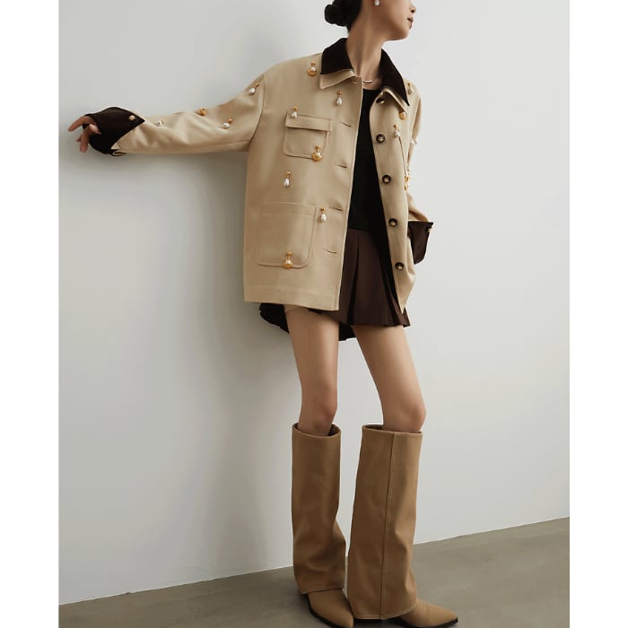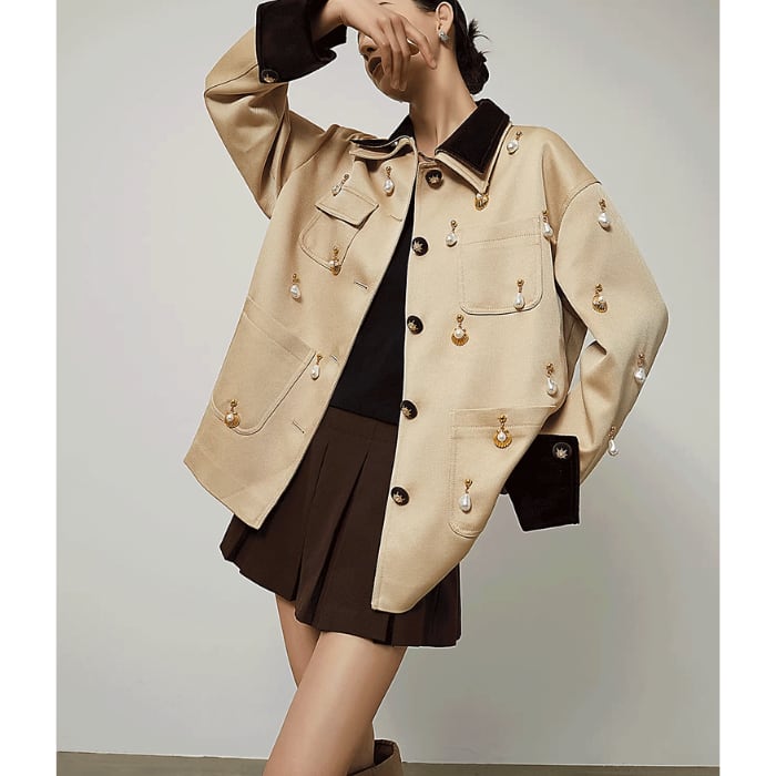 パールチャームモチーフルーズワークジャケット[S-XL]