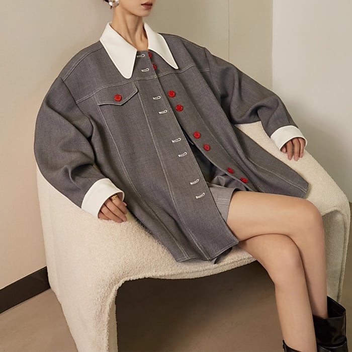 マルチカラールーズジャケットハーフパンツセットアップ(単品購入可)[S-XL]