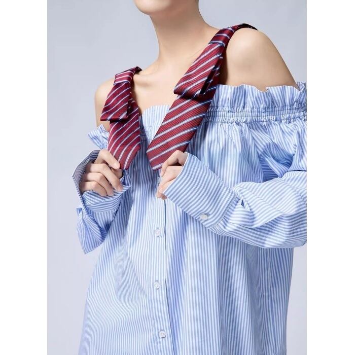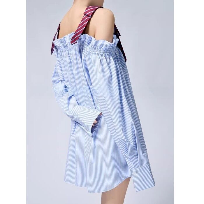 ネクタイストラップオフショルダールーズシャツ[S-L]