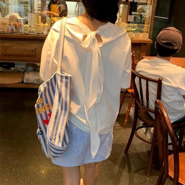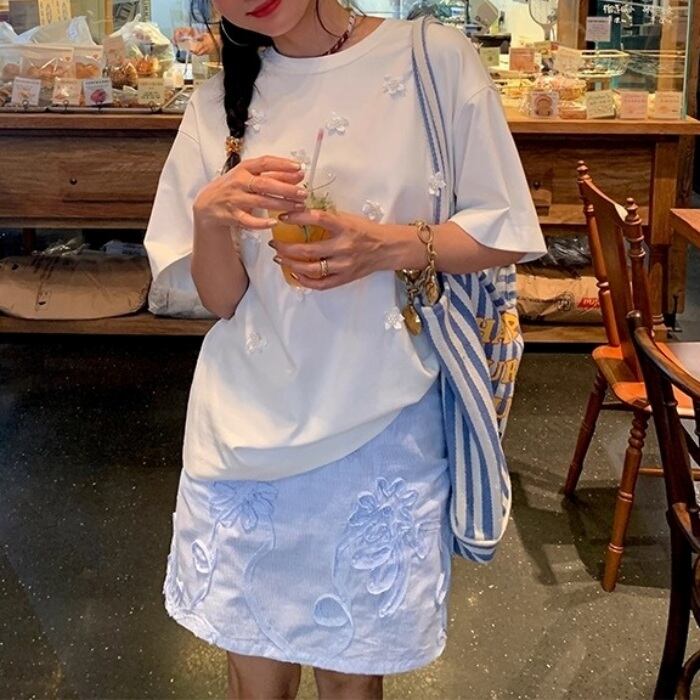 パールフラワーバックリボンTシャツ[S-L]