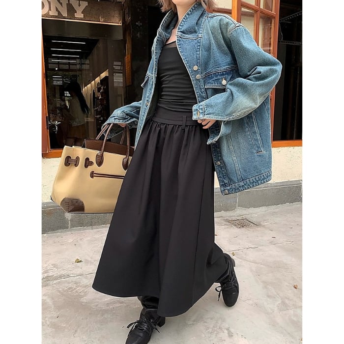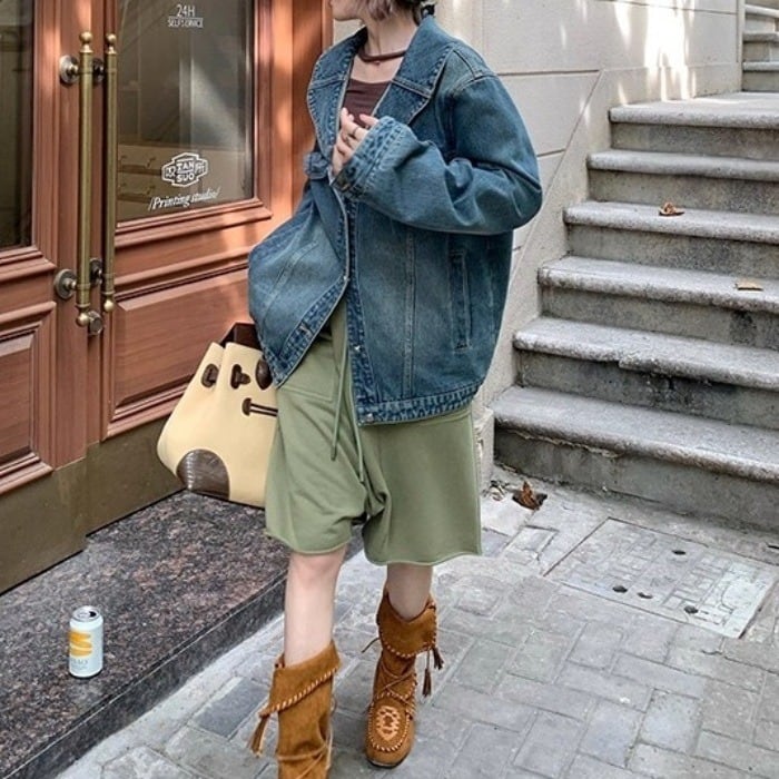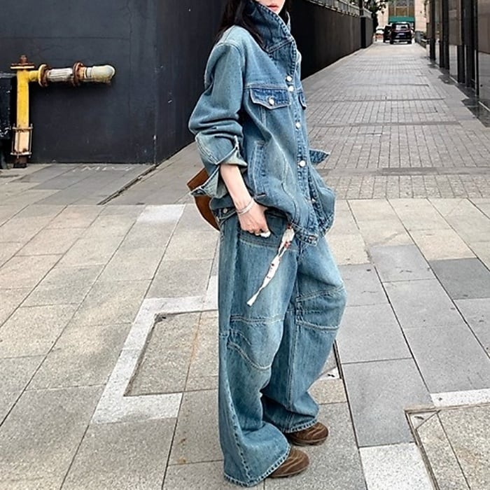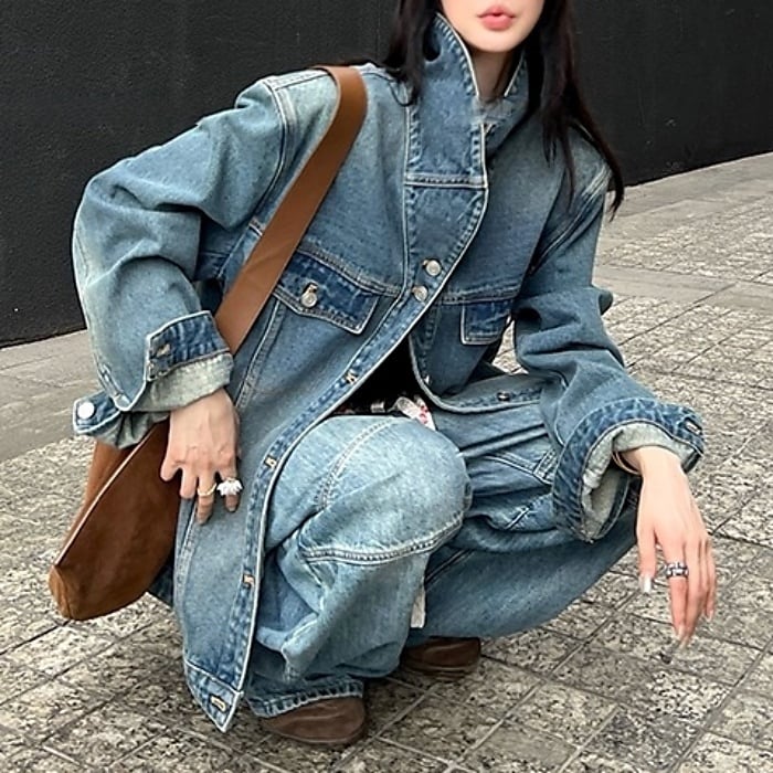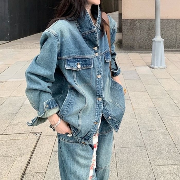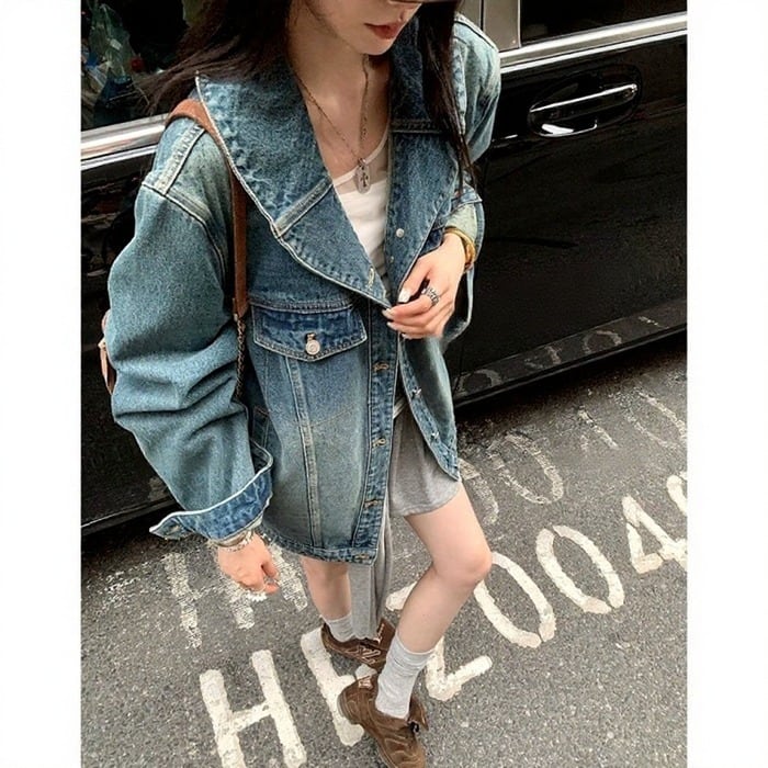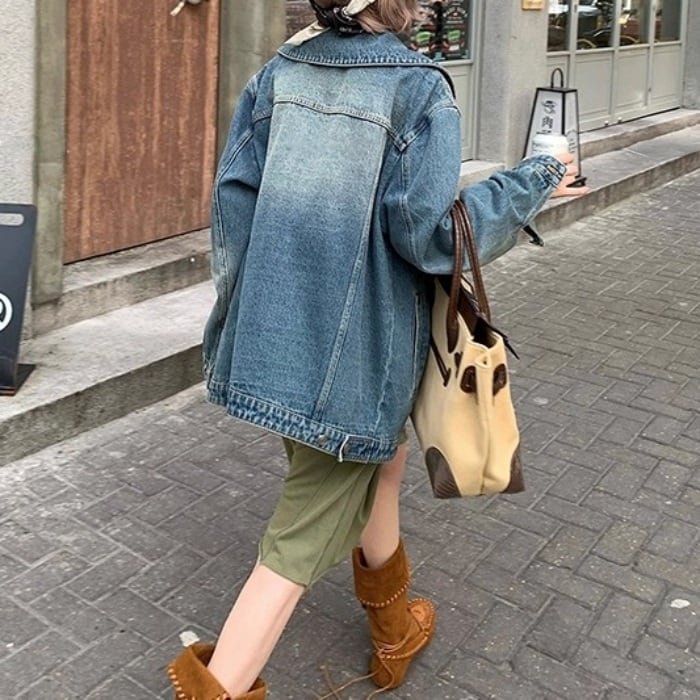 スタンドカーブカラールーズデニムジャケット[XS-L]