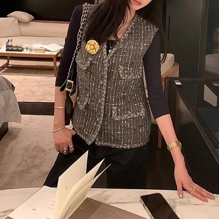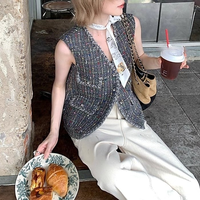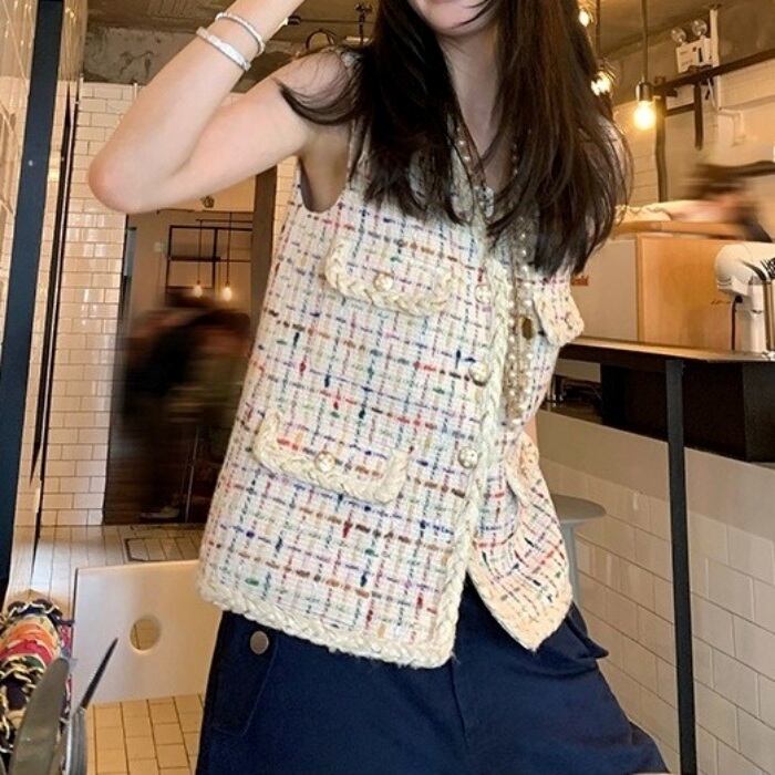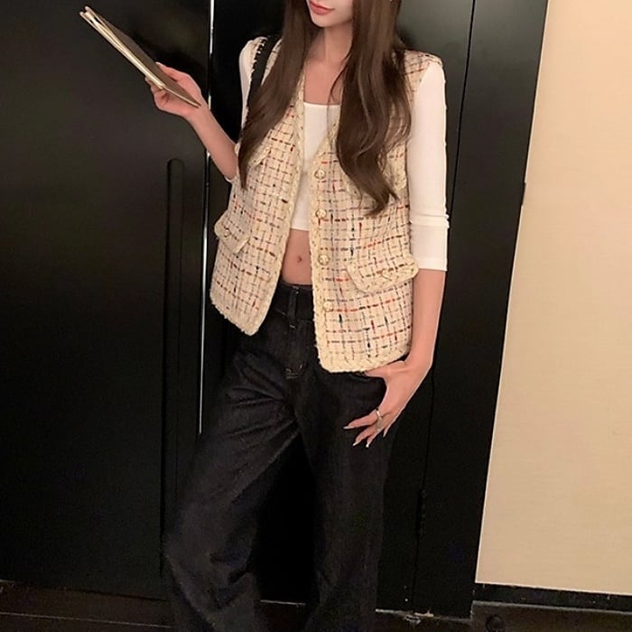 ハイエンドカラーツイードVネックベスト[XS-L]