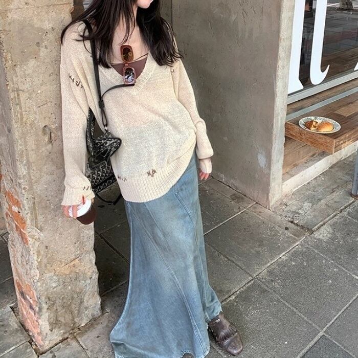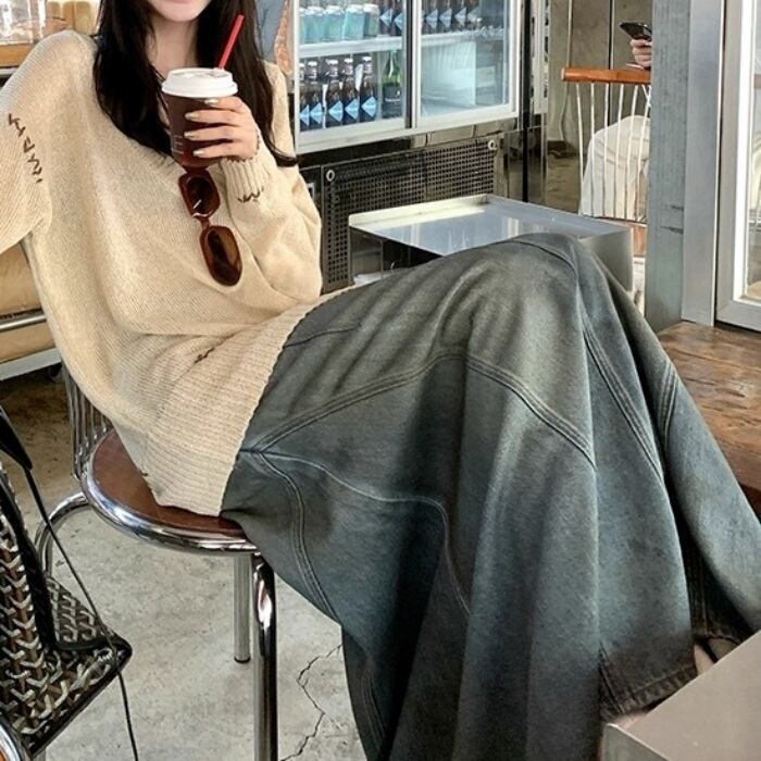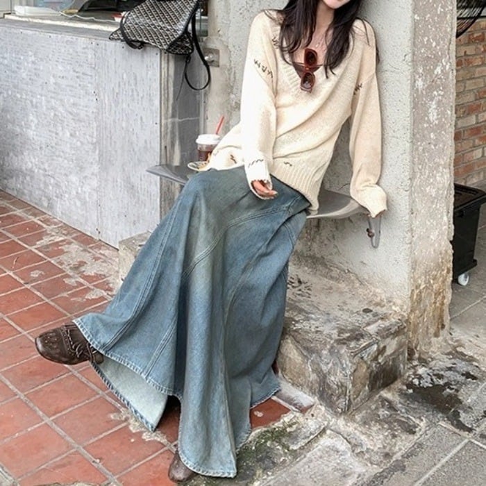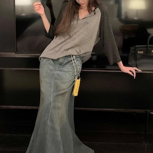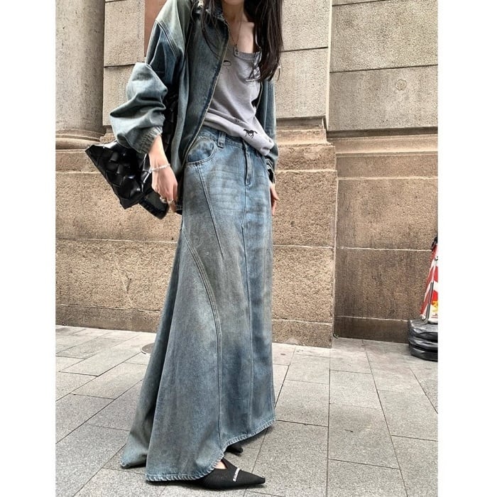 ヴィンテージマーメイドマキシデニムスカート[XS-XL]