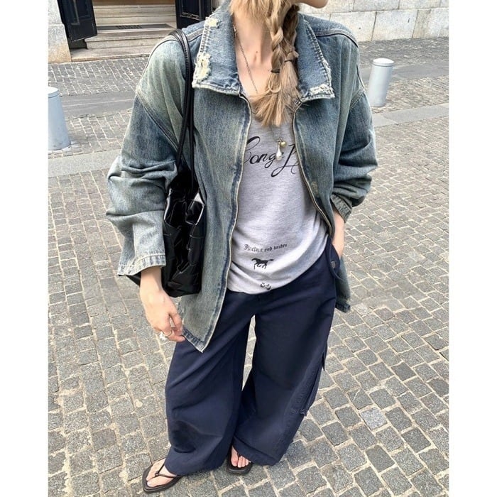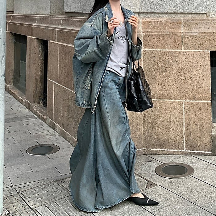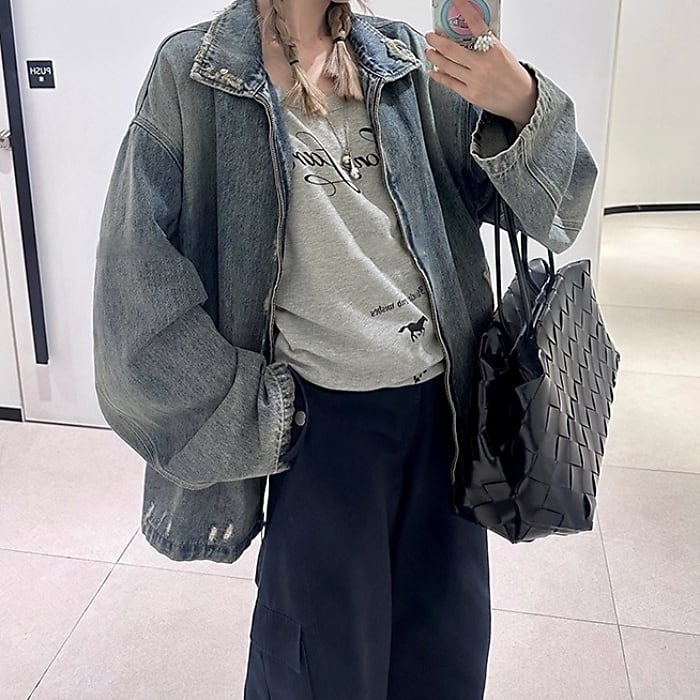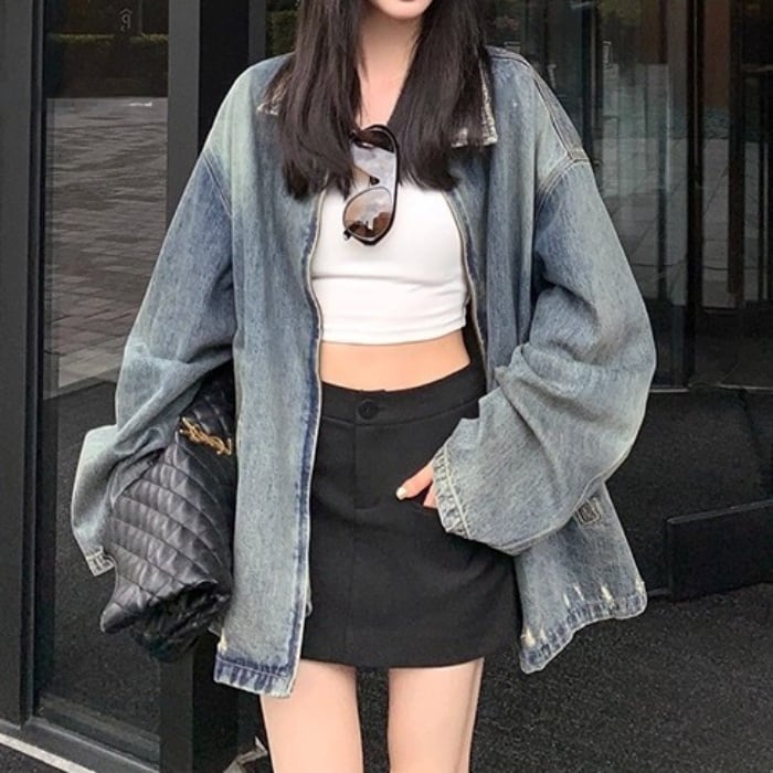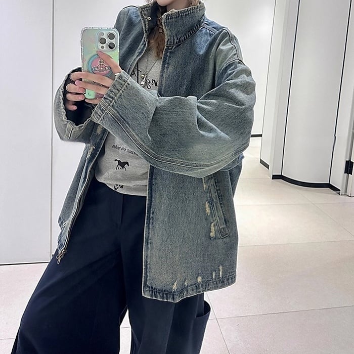 ヴィンテージルーズジップアップデニムジャケット[XS-L]