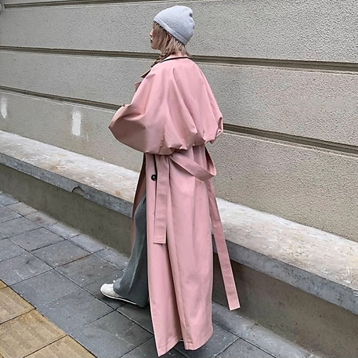 バックギャザーコットンツイルトレンチコート[XS-L]