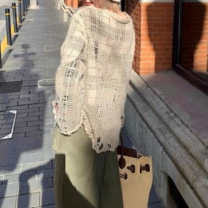 レイヤードデザインダメージニットカーディガン[XS-L]