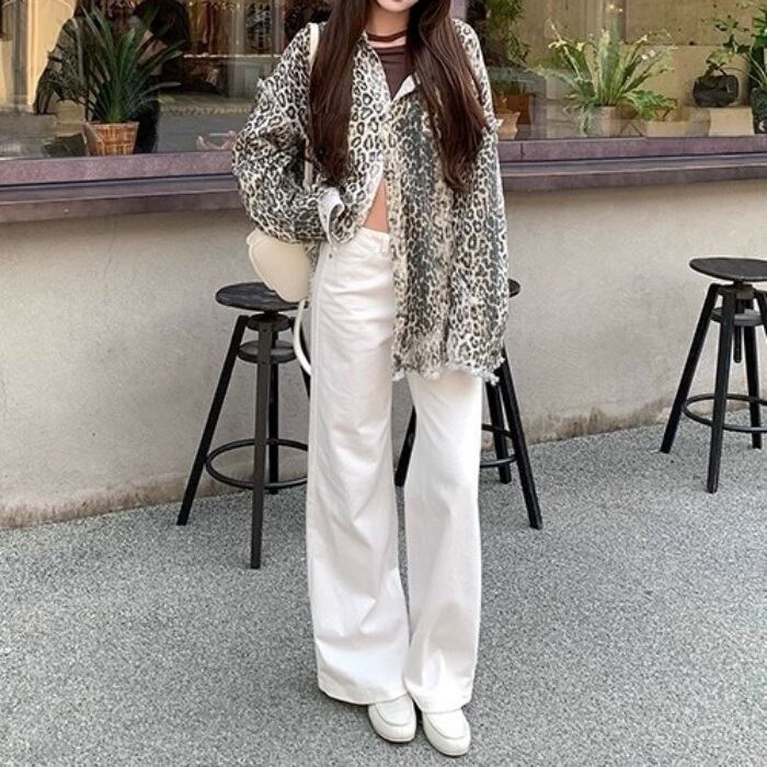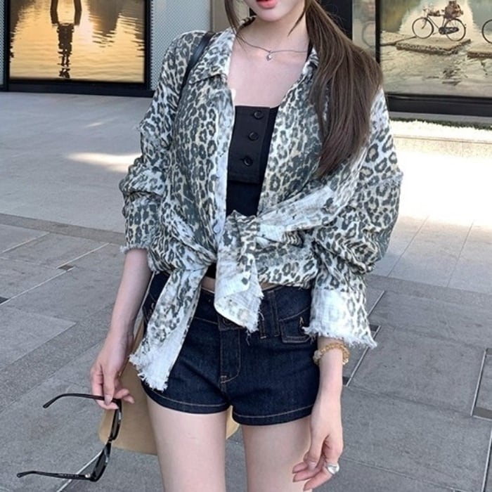 レオパードバブルプリーツルーズシャツ[XS-L]