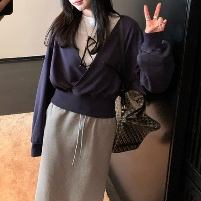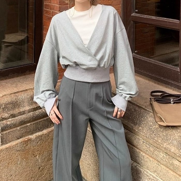 レイヤードカシュクールスウェットプルオーバー[XS-L]