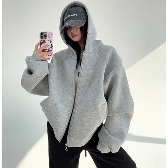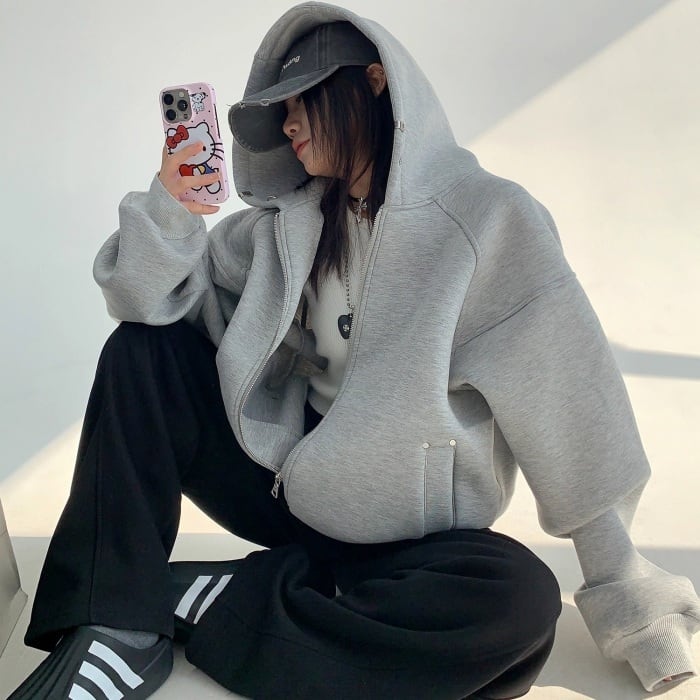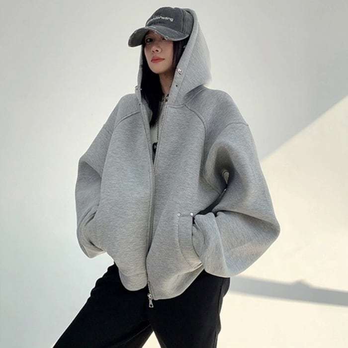 ドロップショルダーエアーレイヤースウェットパーカー[M-XXL]