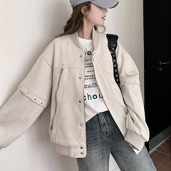 フェイクスエードベイスボールジャケット[S-XL]