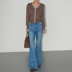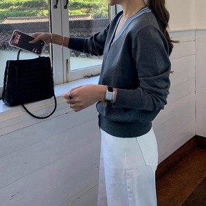 バイカラーラインVネックニットカーディガン[S-L]