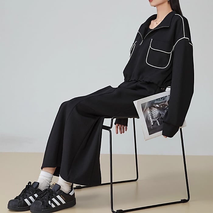 ハーフジッププルオーバー+ワンピース セットアップ[S-XL]