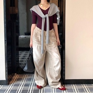 ドレーピングステッチワイドモップパンツ[XS-L]