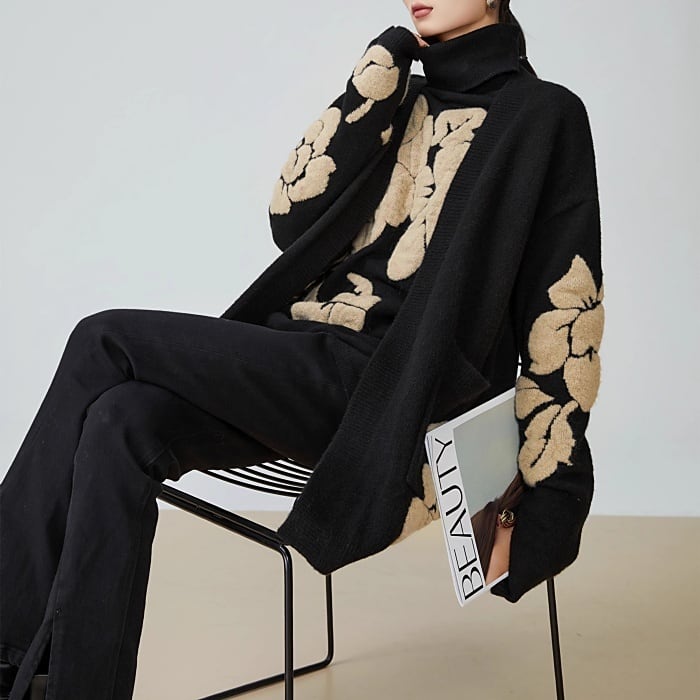ジャガードフラワーニットアンサンブル(単品購入可)[S-XL]