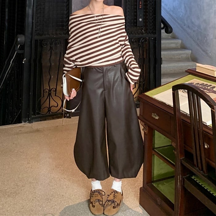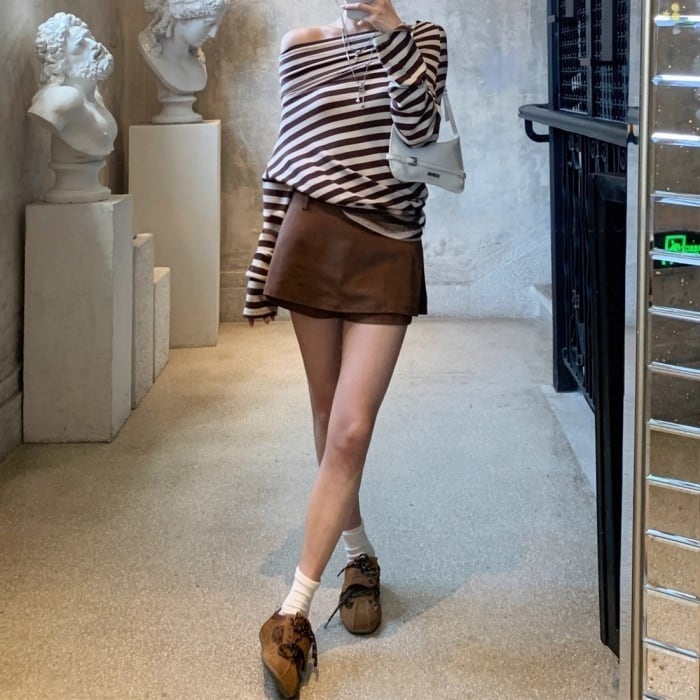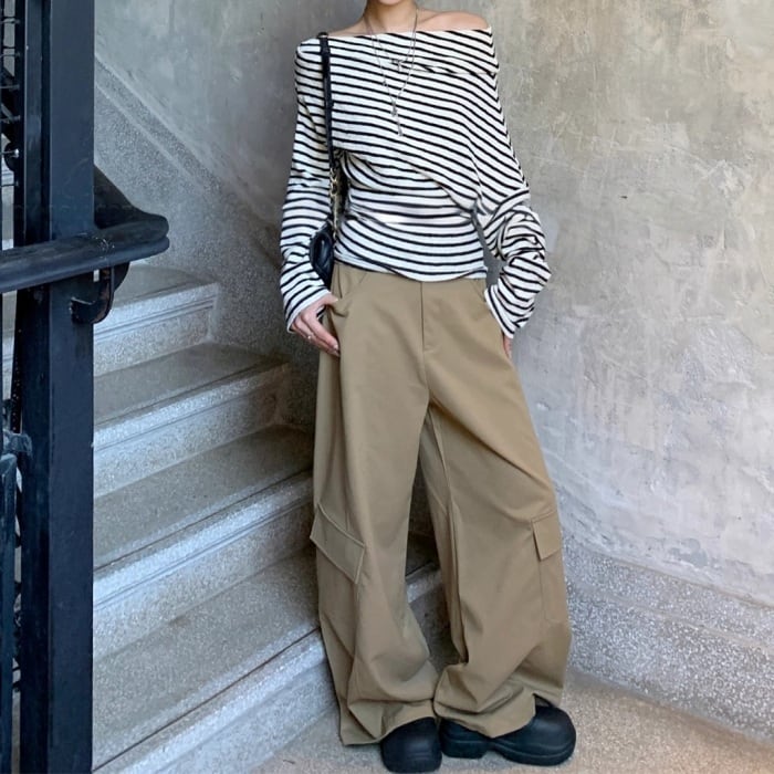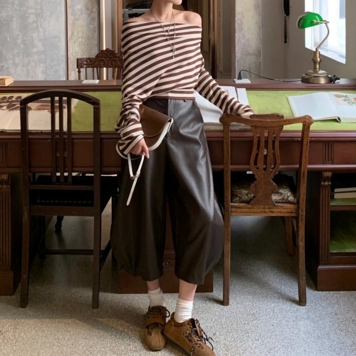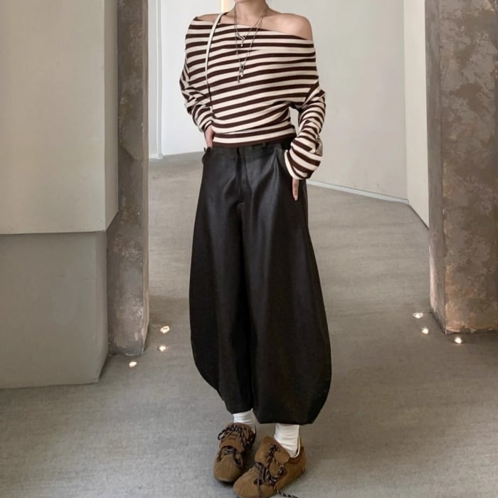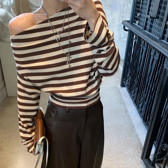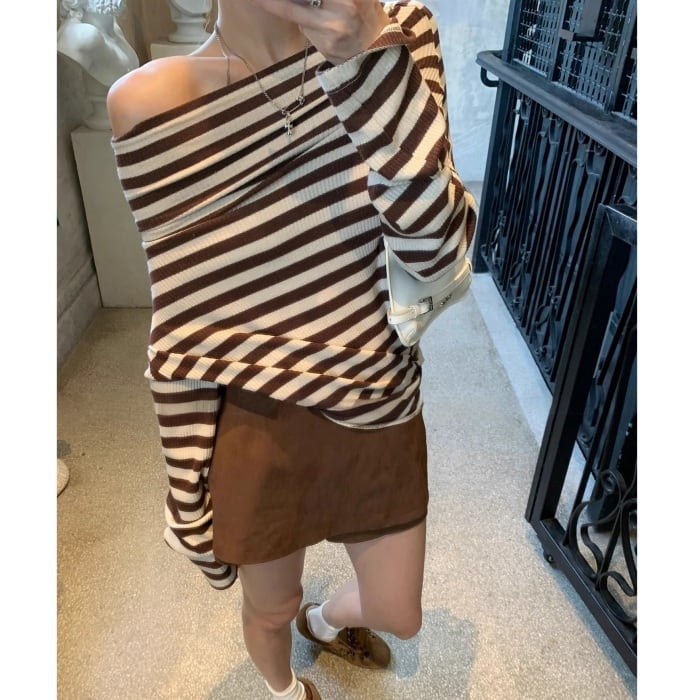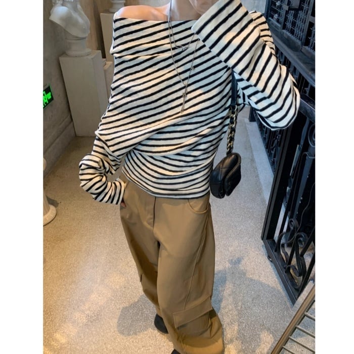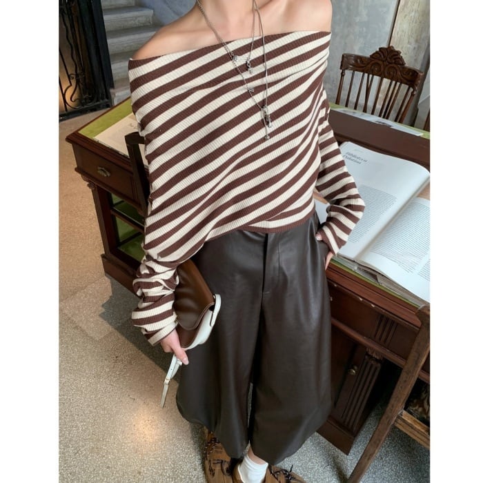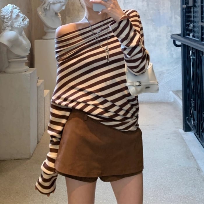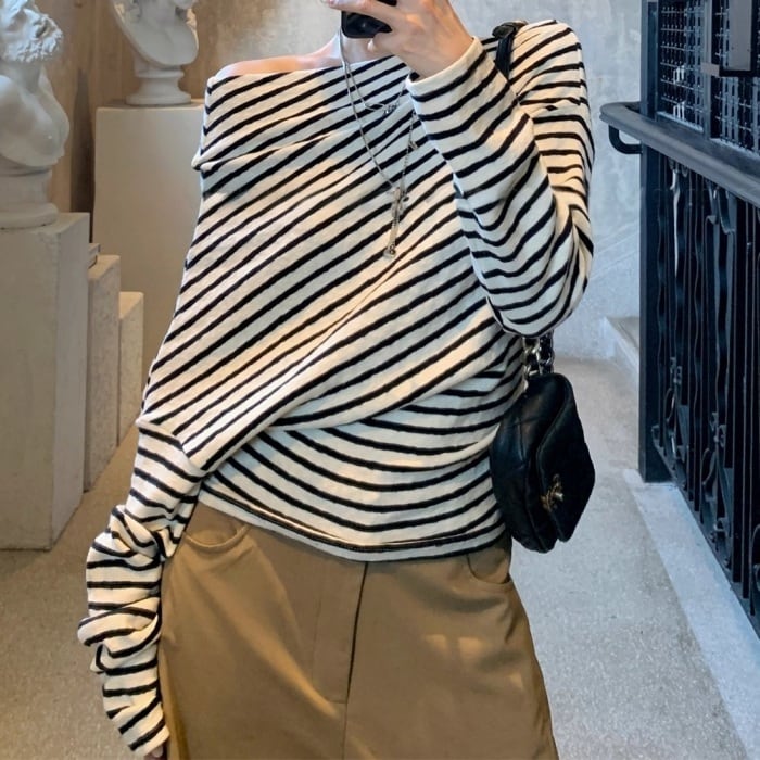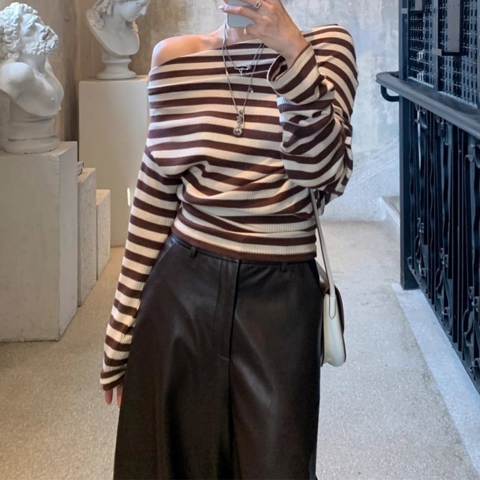 ストライプストレッチリブニット[S-L]