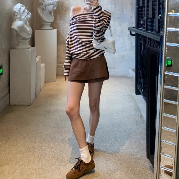 ●素材 (ブラウン×ベージュ生地: ビスコース48%、ナイロン23%、ポリエステル26%、 スパンデックス3%)(ブラック×ホワイト生地: コットン97%、スパンデックス3%)