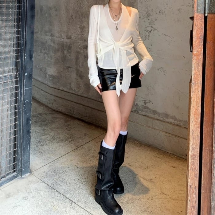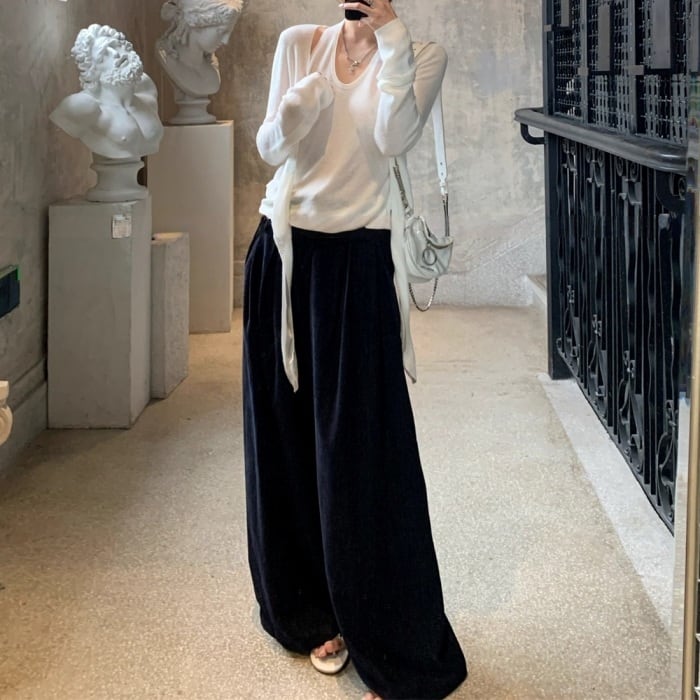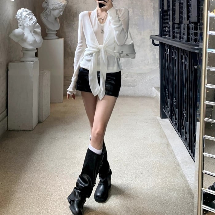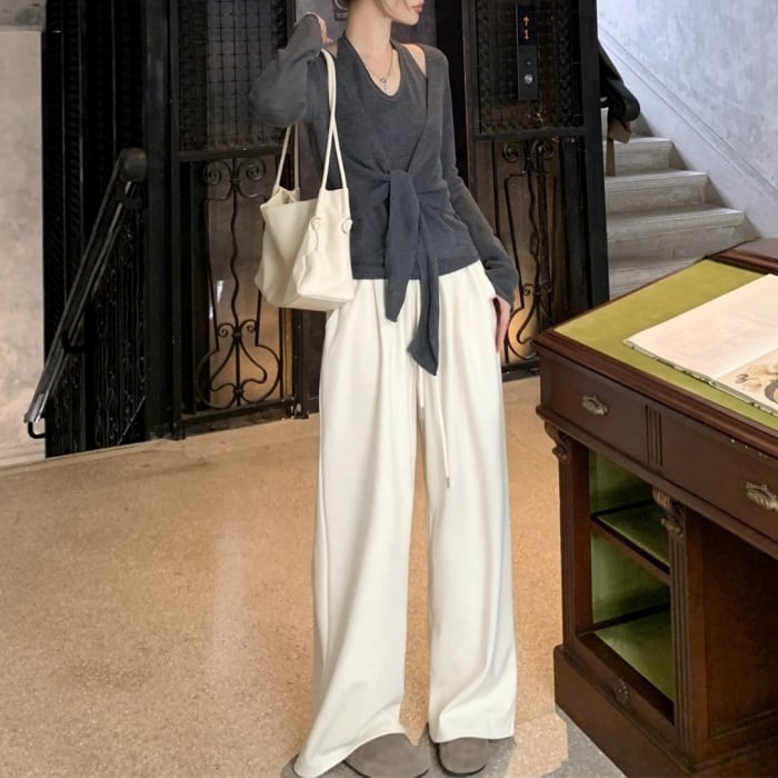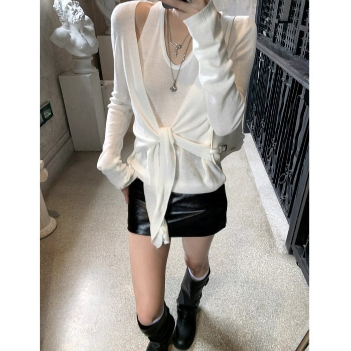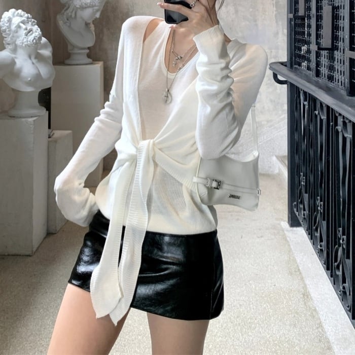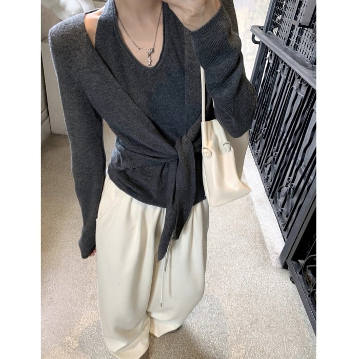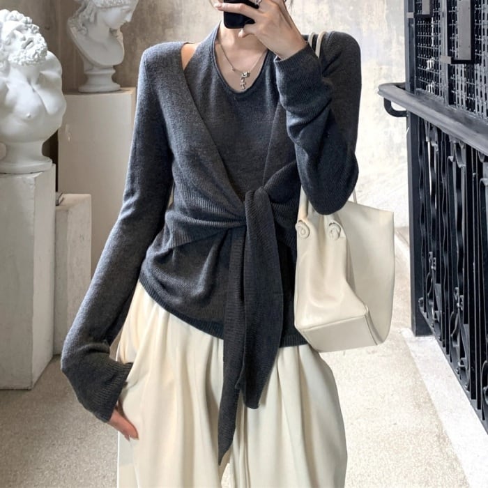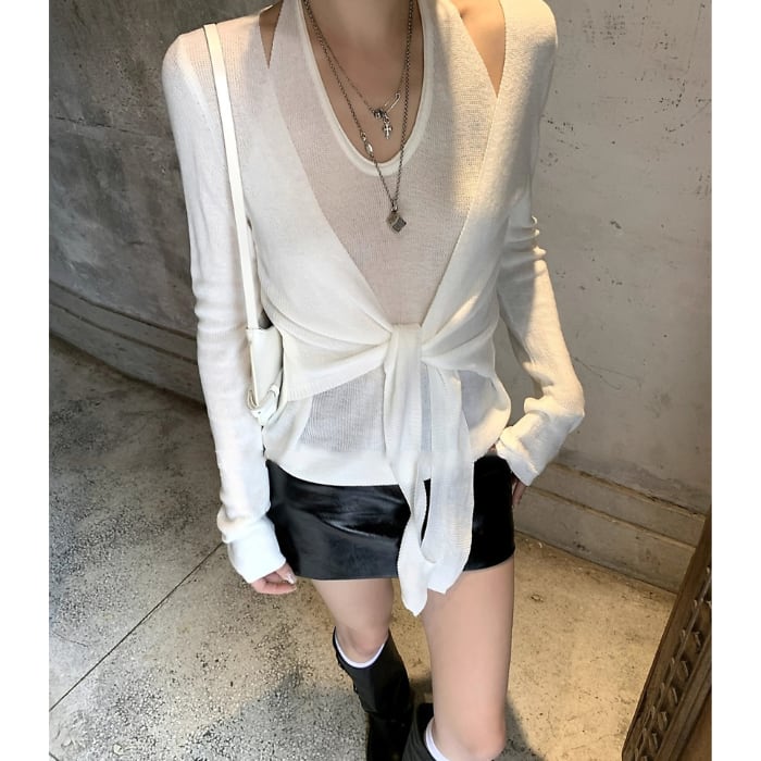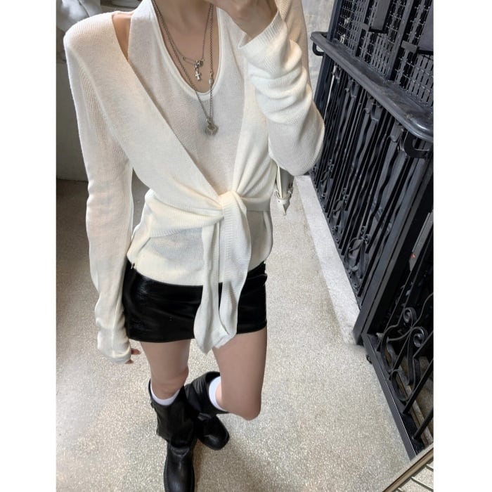 タイフロントスリムフィットアンサンブルニット[S-M]