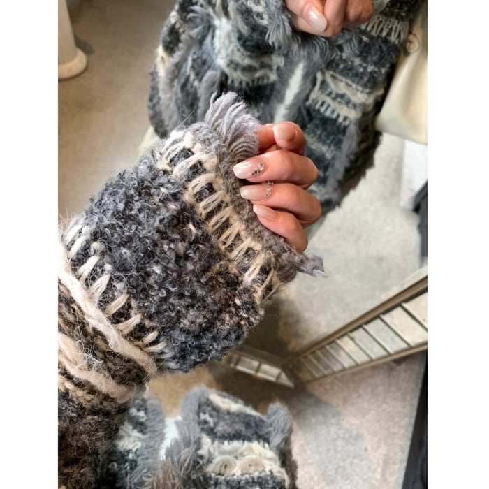 フリンジ3Dストライプニットカーディガン[S-M]