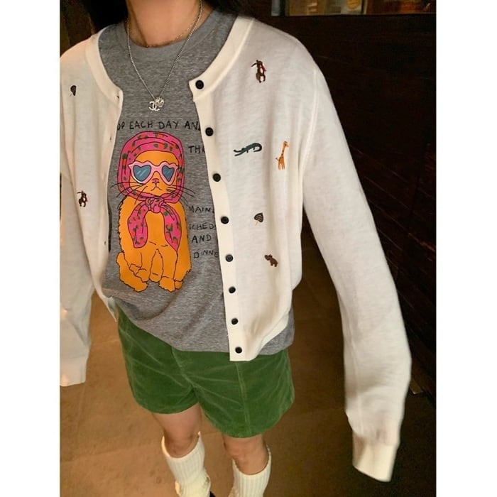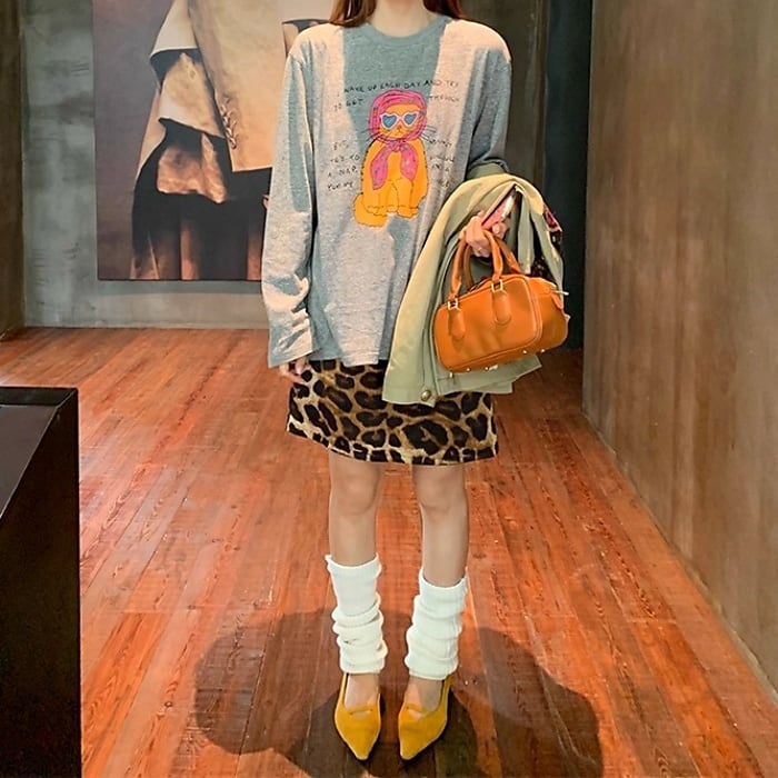 イラストプリントロングTシャツ[S-L]