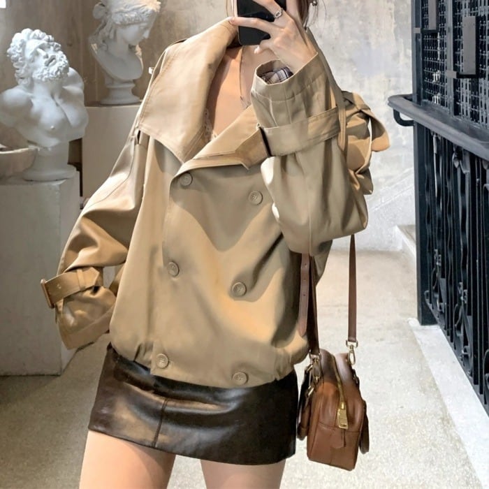 スタンドカラー ダブルブレストショートジャケット[S-L]