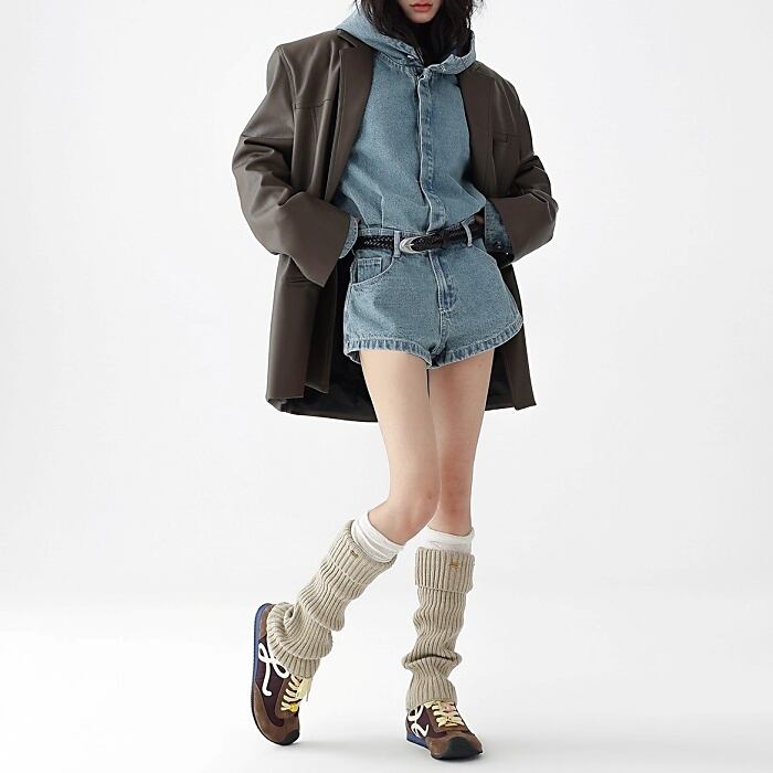 フードデニムジャンプスーツ[S-L]