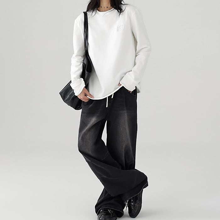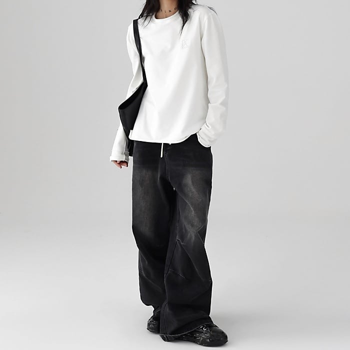 ラウンドネックベーシックルーズTシャツ[S-L]