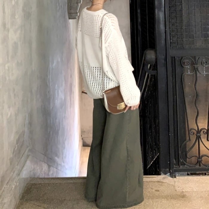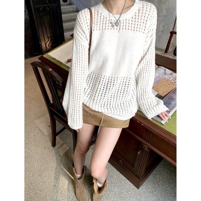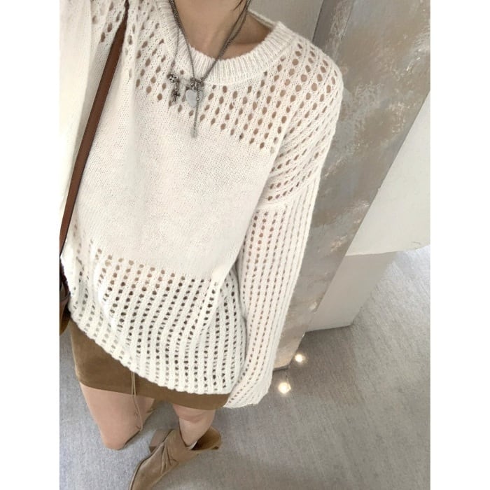ウールブレンドメッシュニットプルオーバー[S-M]
