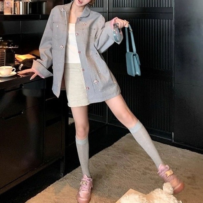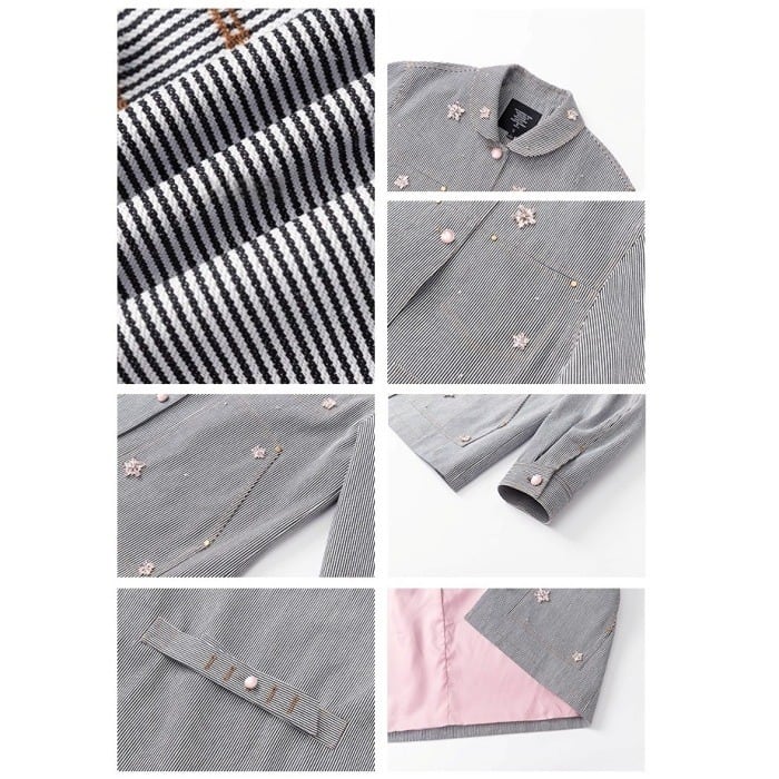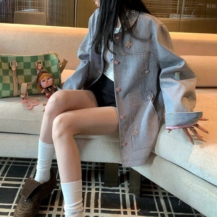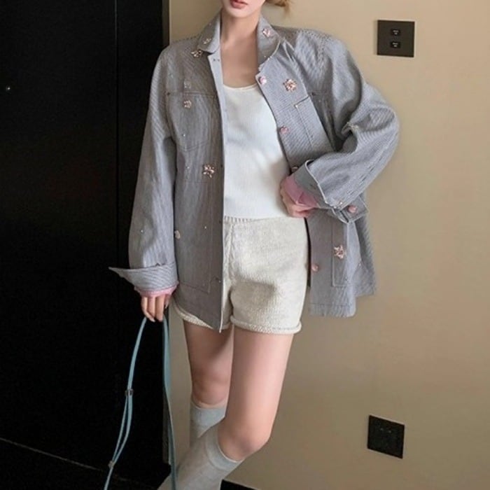 ビジューヒッコリーデニムルーズジャケット[XS-L]
