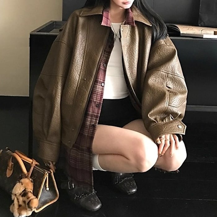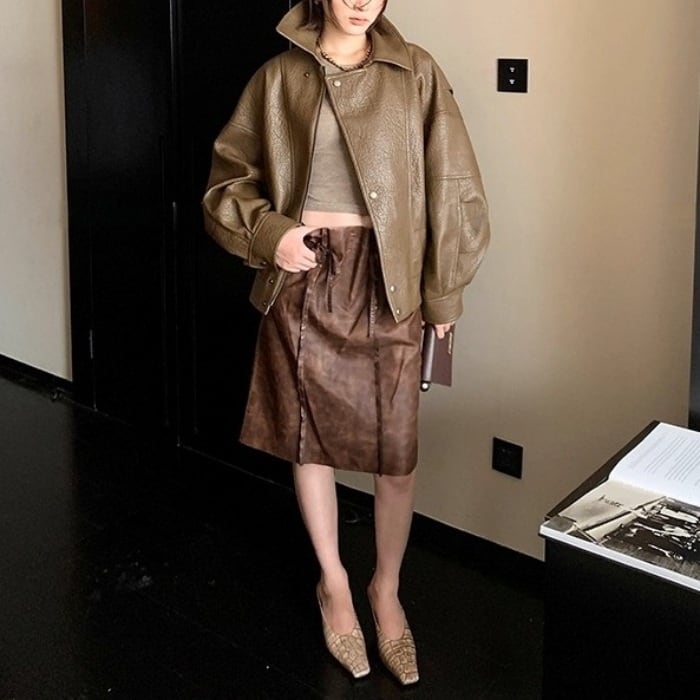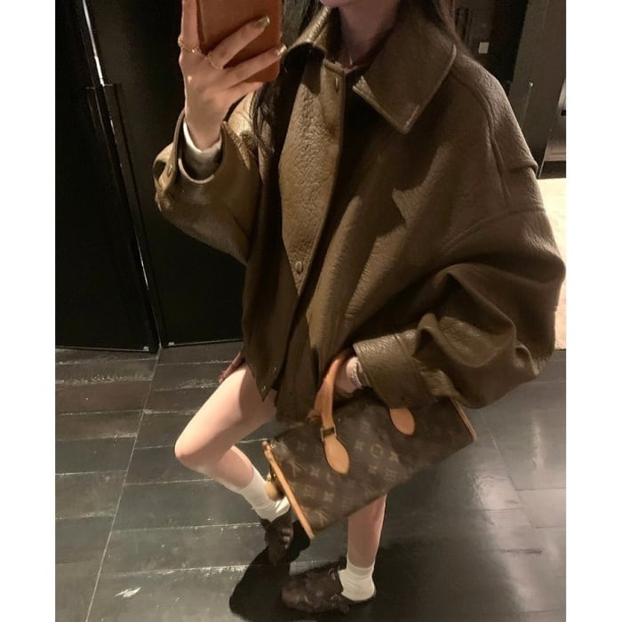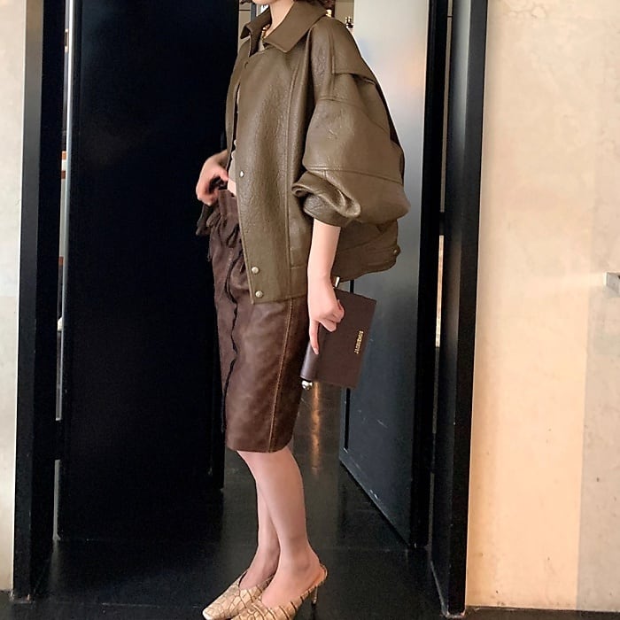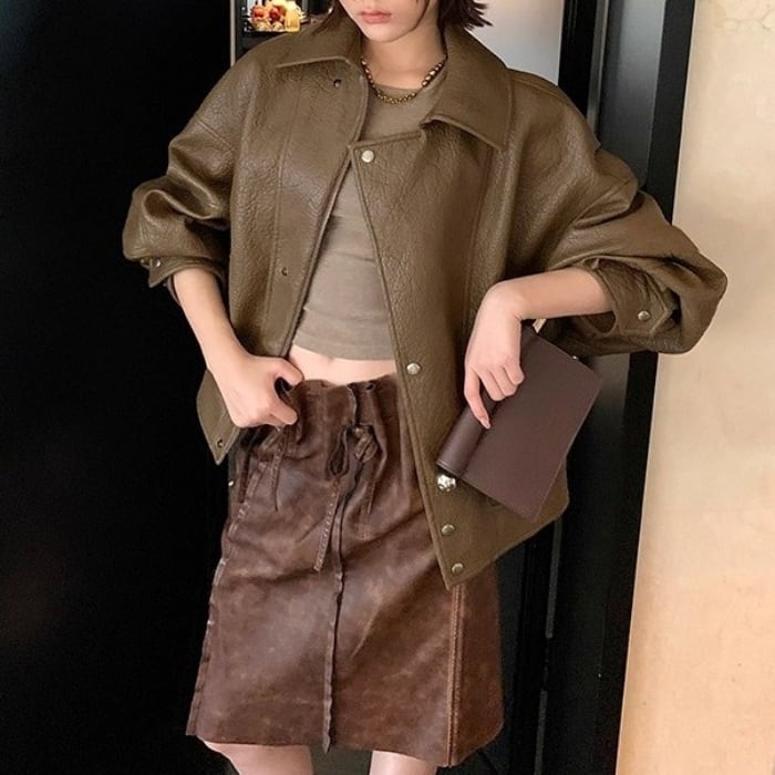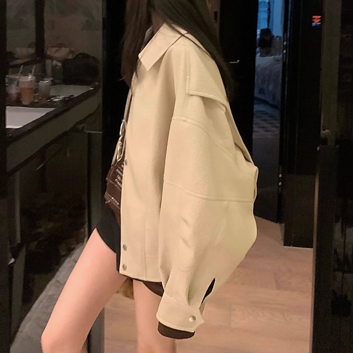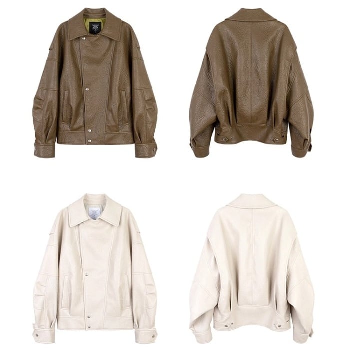 エンボスギャザールーズエコレザージャケット[XS-L]