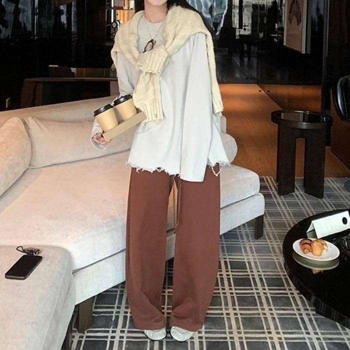ワイドレッグスウェットシミターパンツ[XS-XL]