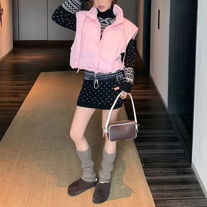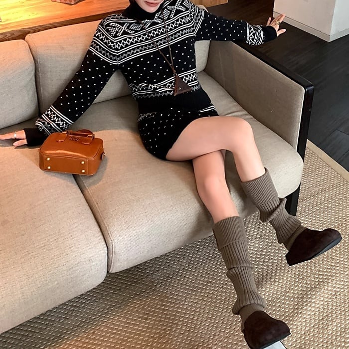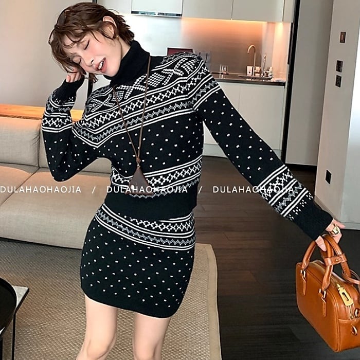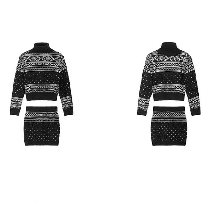 ジオメトリックタートルニットミニスカートセッアップ