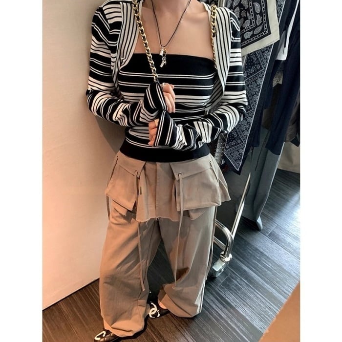 プリーツスカートワイドモップパンツ[S-L]