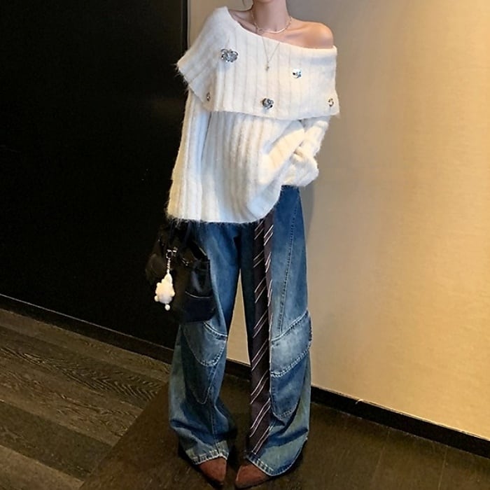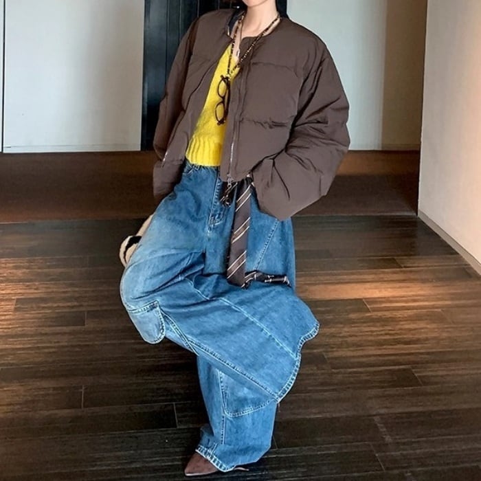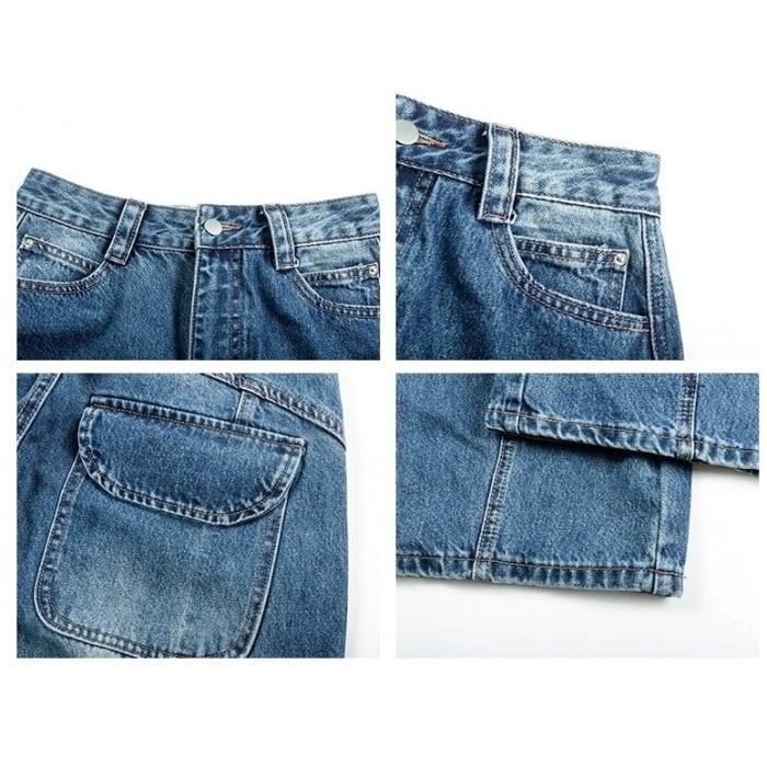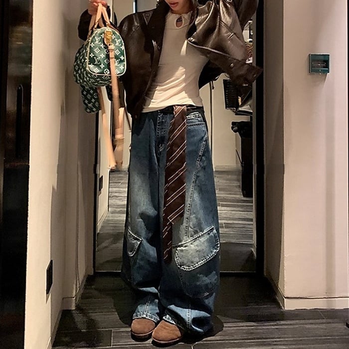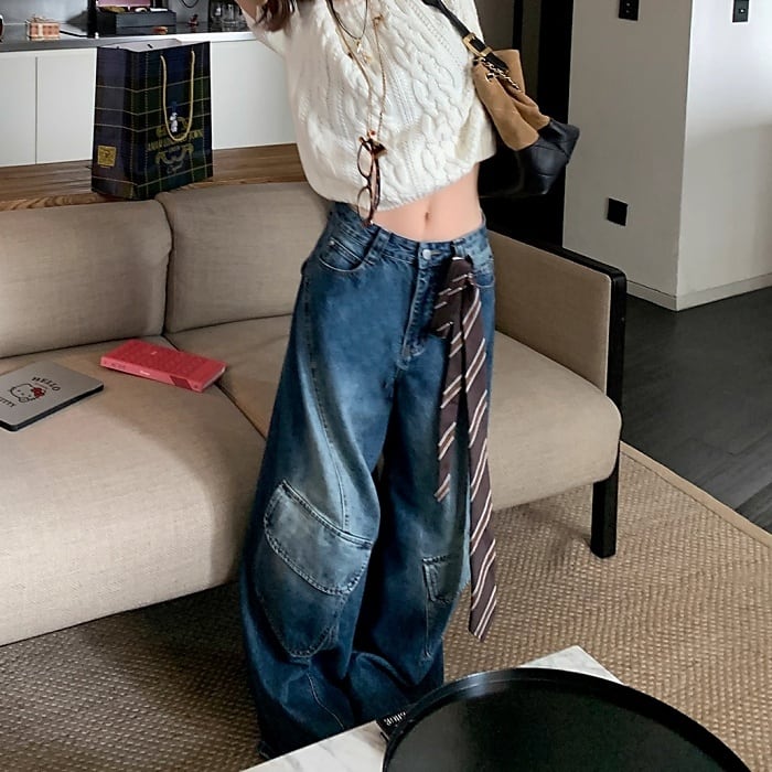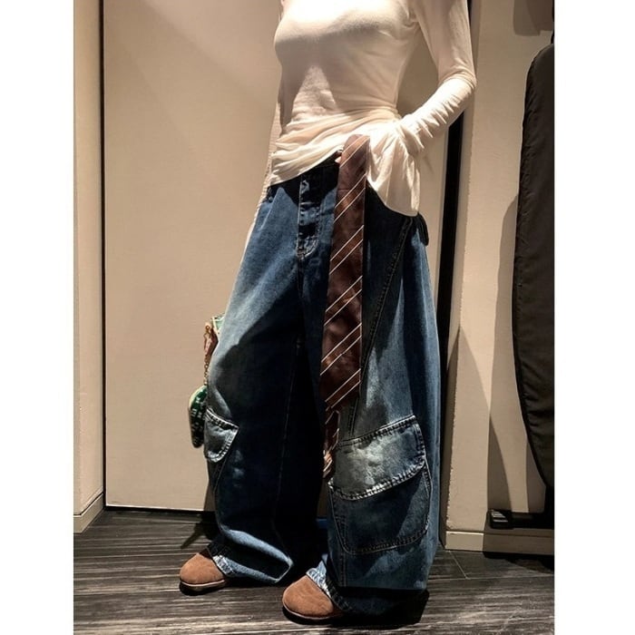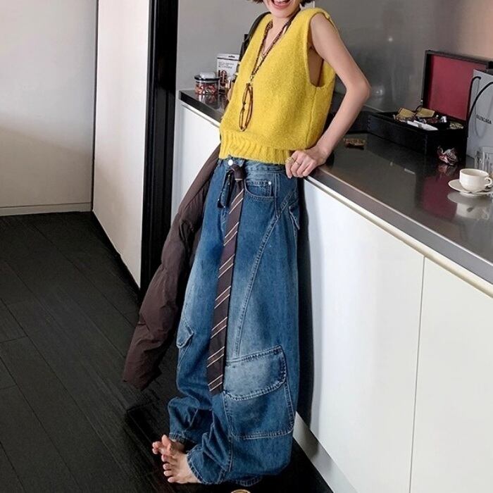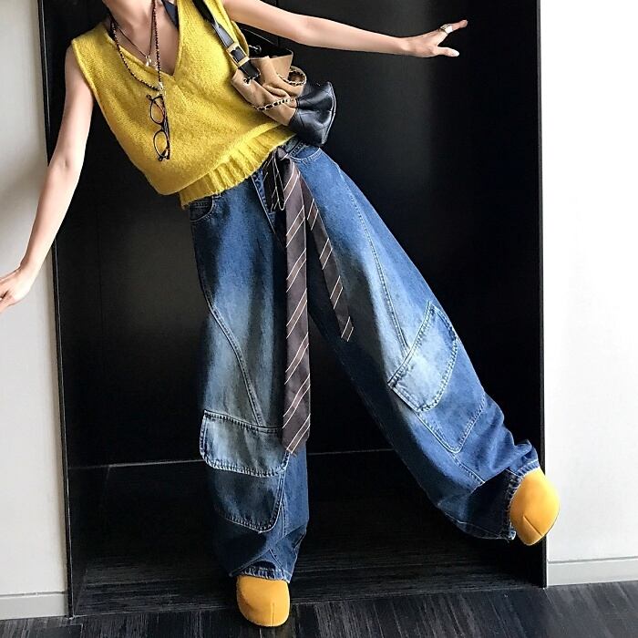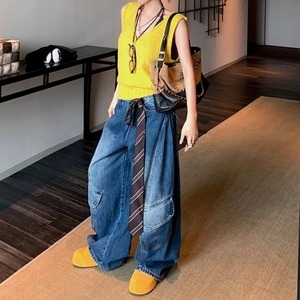 ネクタイストラップカーゴデニムパンツ[S-L]