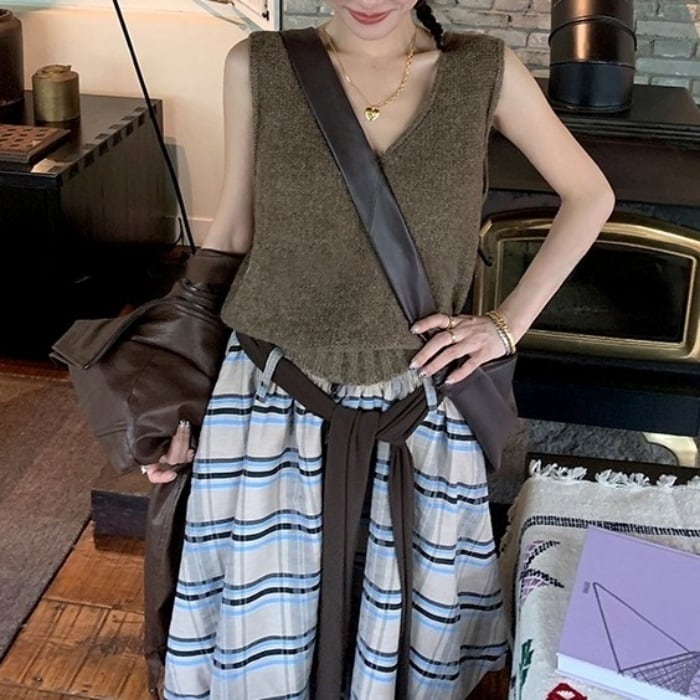 ウールブレンドVネックノースリーブニット[2COLOR]