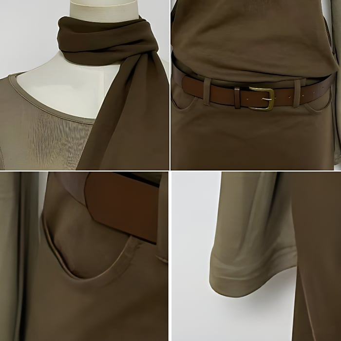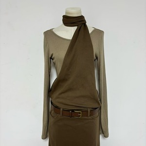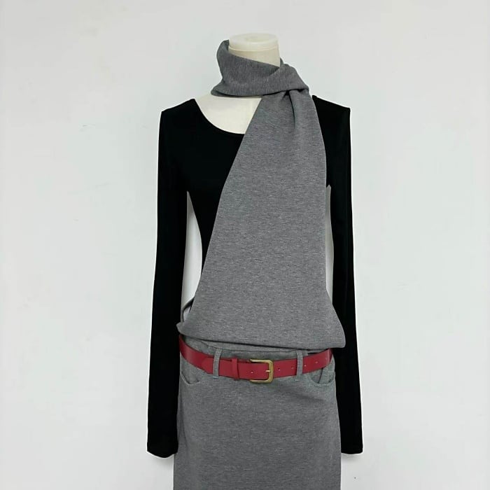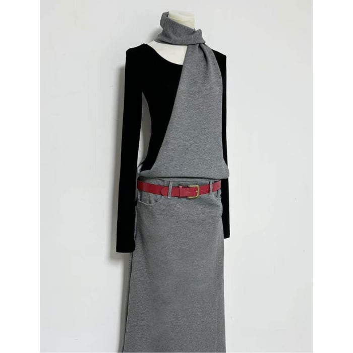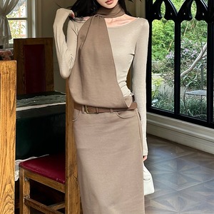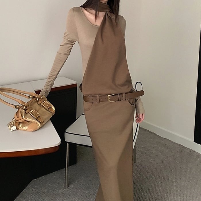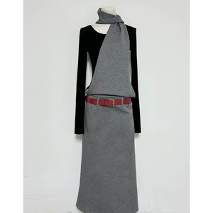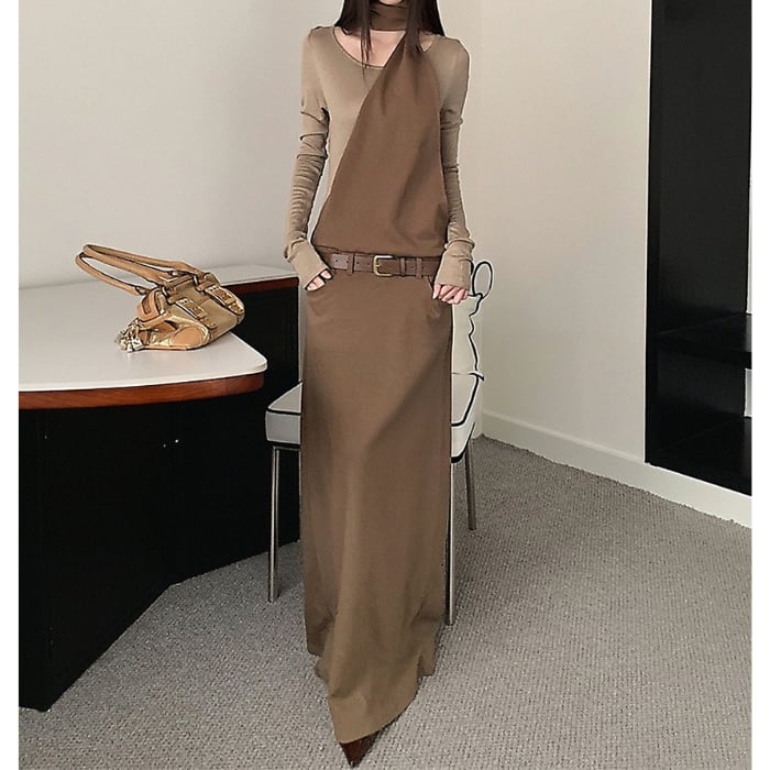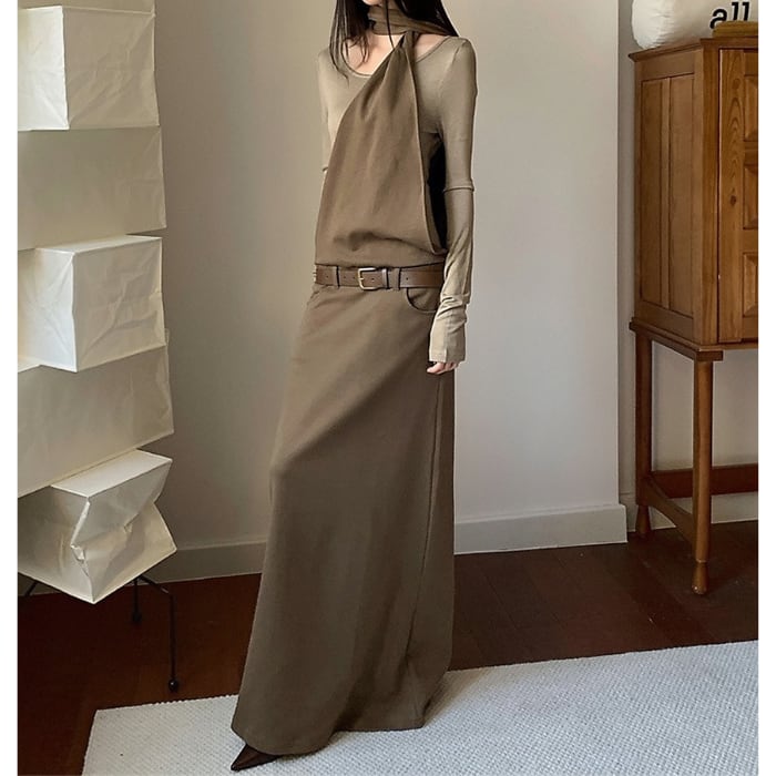 レイヤードホルターネックロングワンピース(ベルト付き)[S-L]