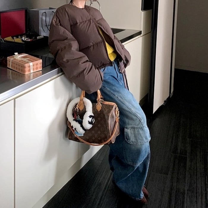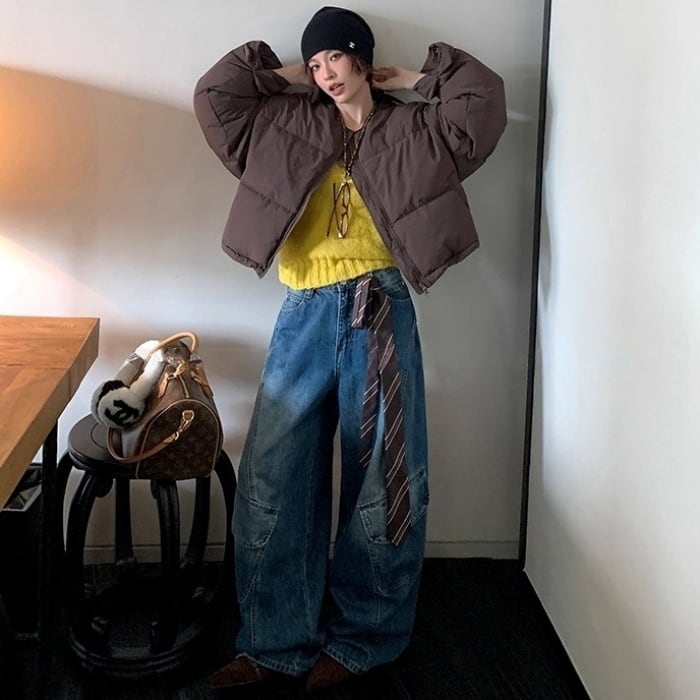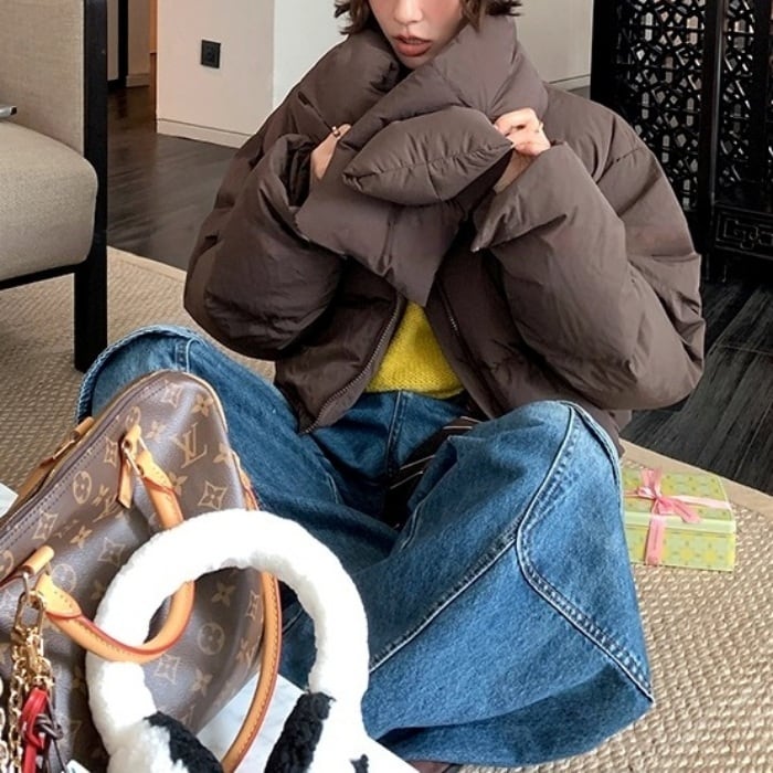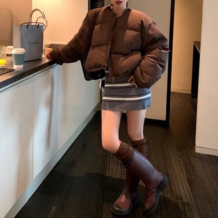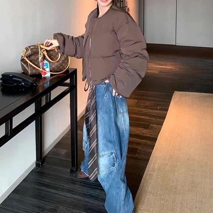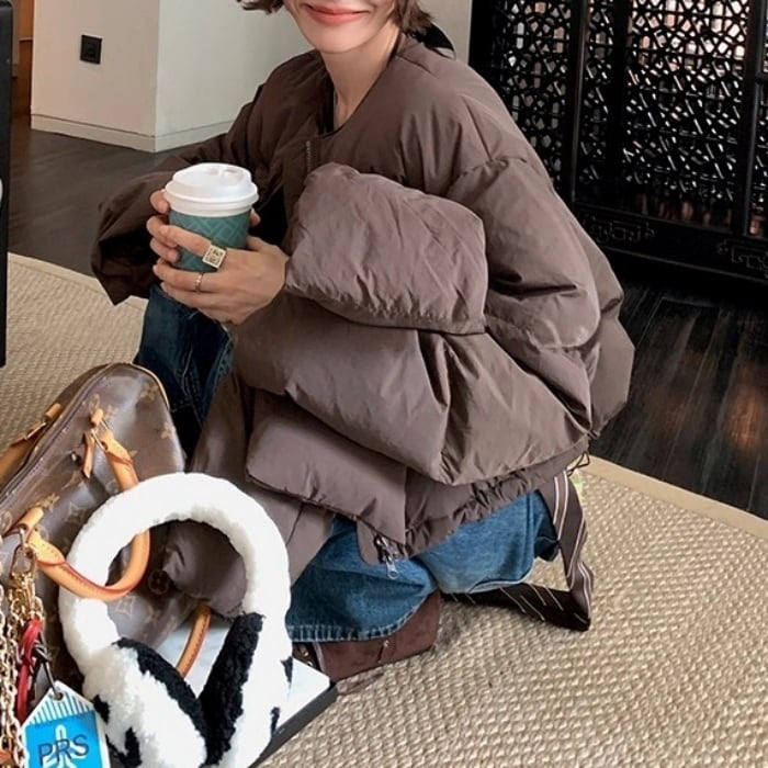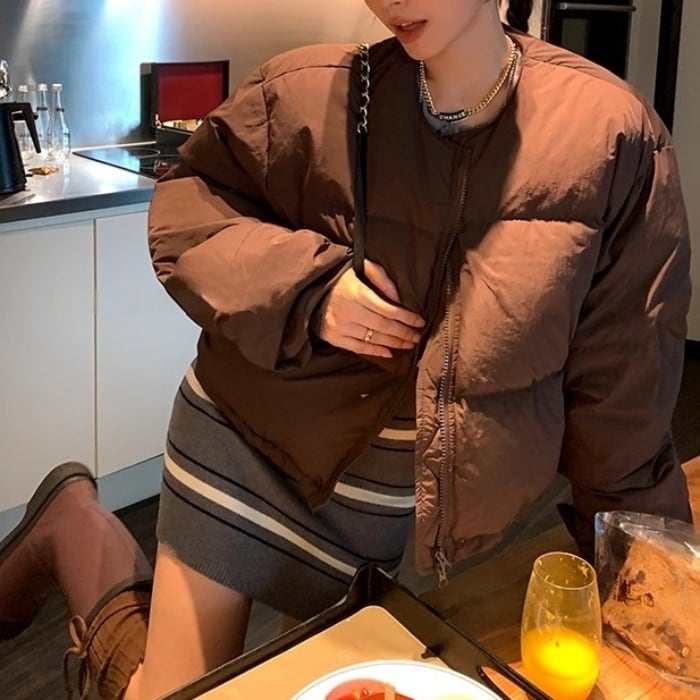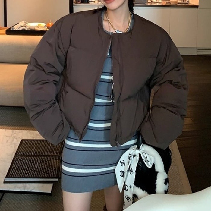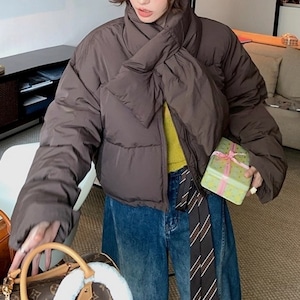 ノーカラーショートパフコート(マフラー付き)[S-L]