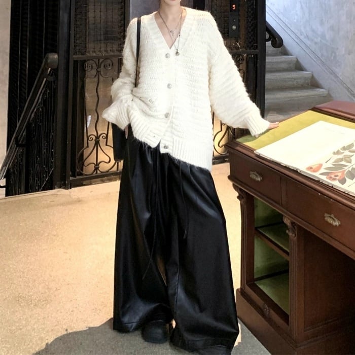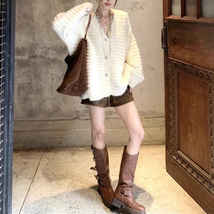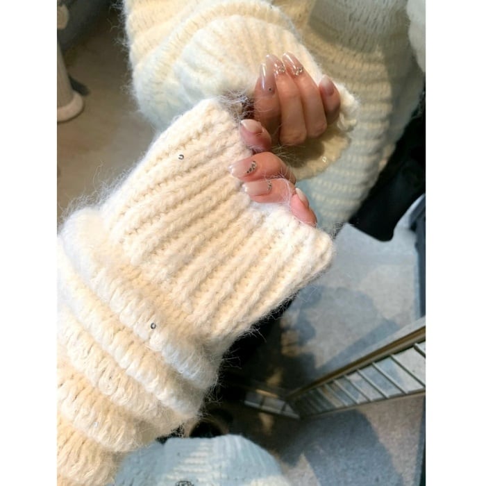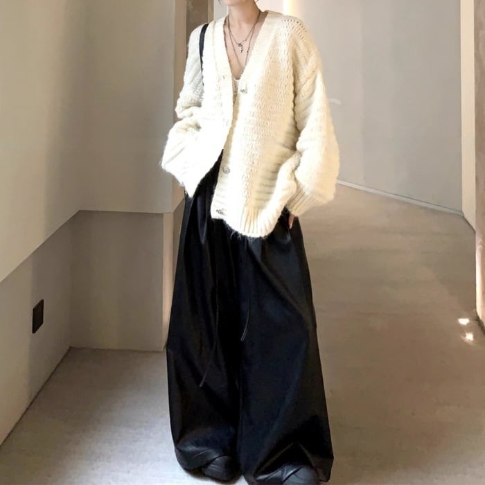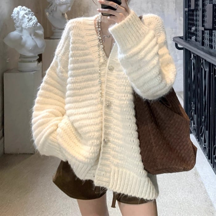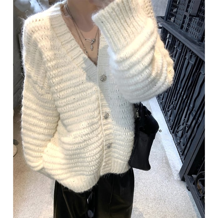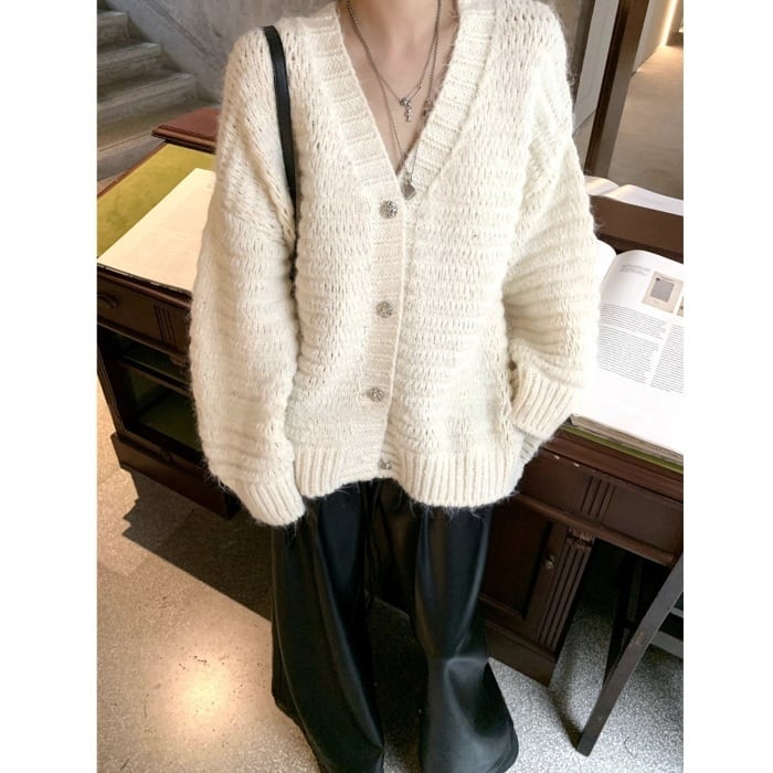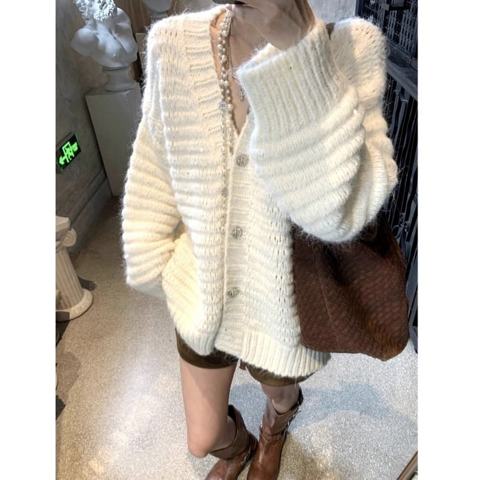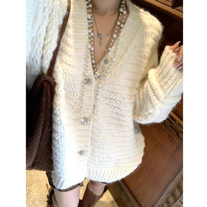 スパンコールブラッシュニットVネックカーディガン[S-M]