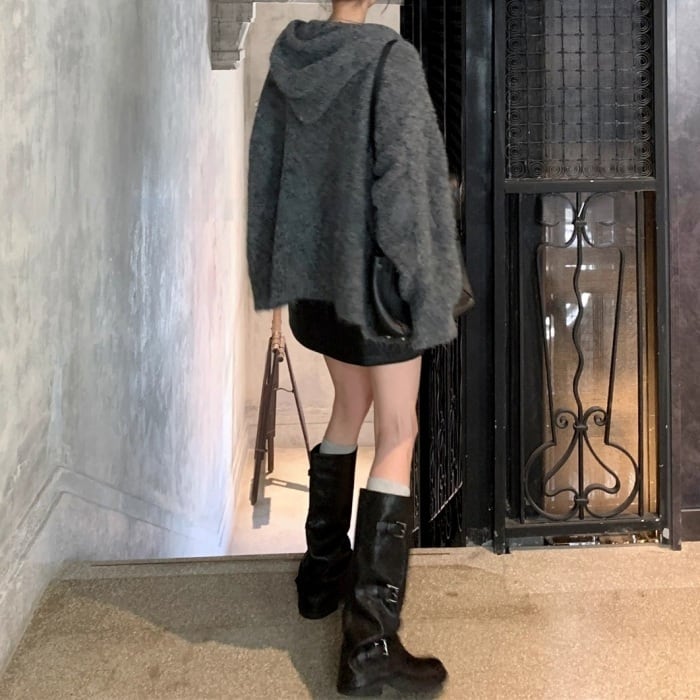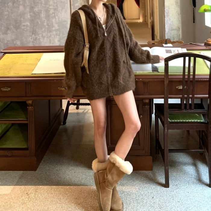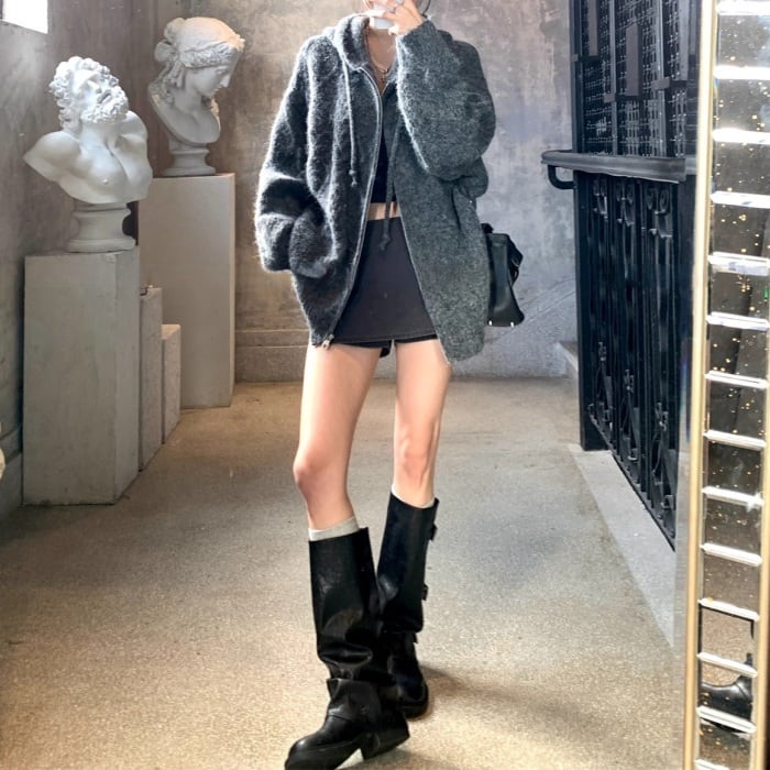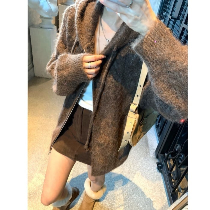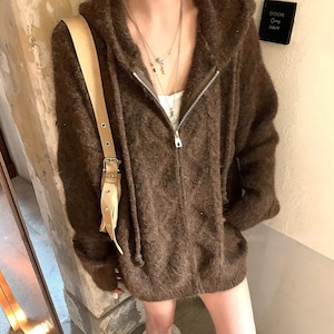 スパンコールジップアップニットパーカー[S-M]