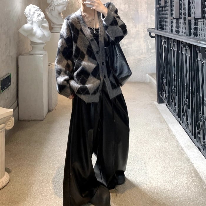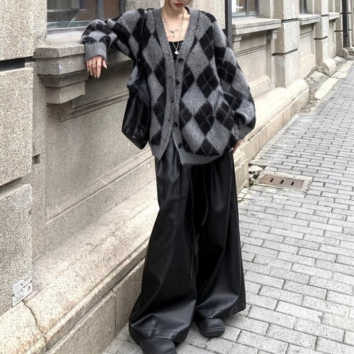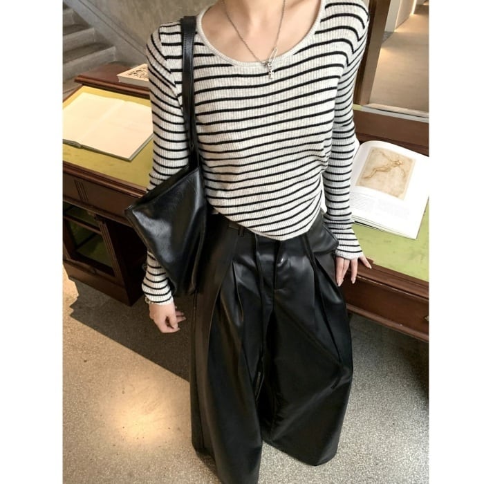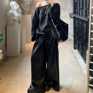 ドローストリングPUレザーモッピングパンツ[S-L]