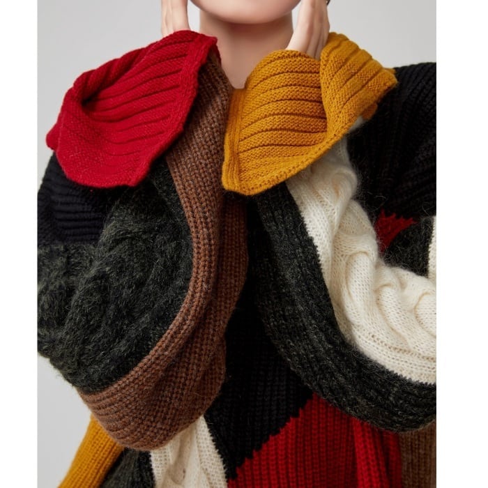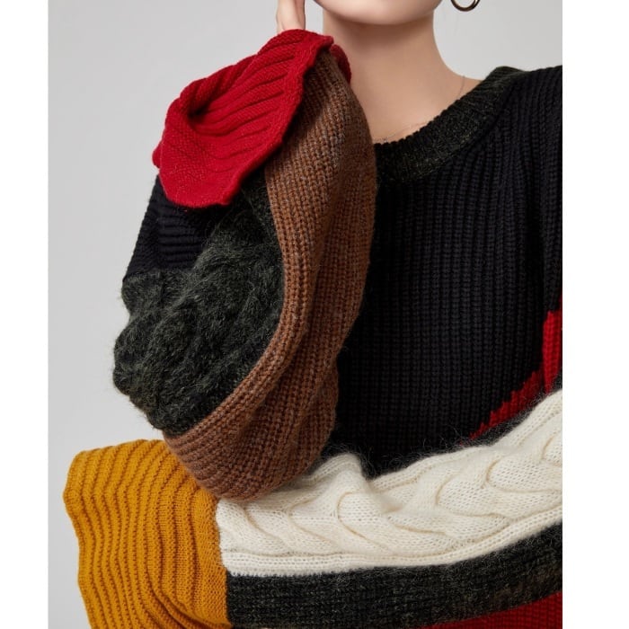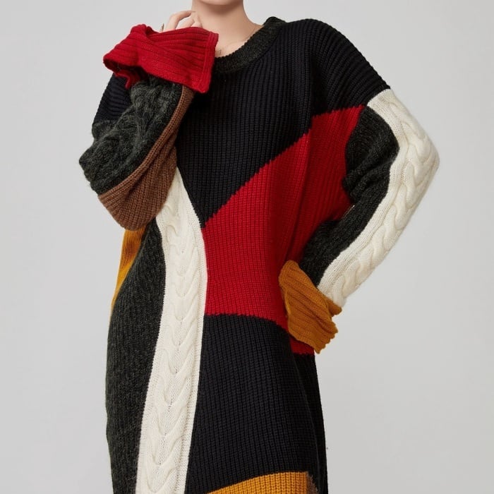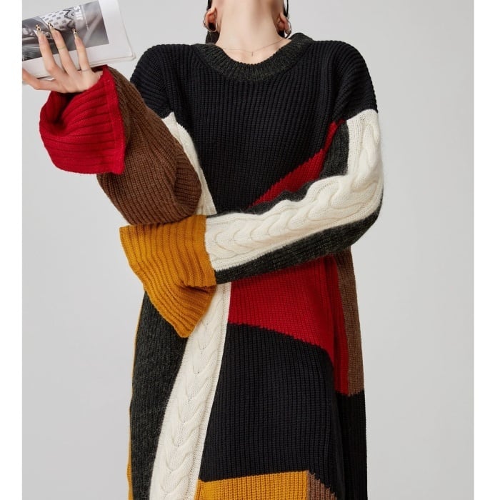 マルチカラードッキングニットワンピース[S-XL]