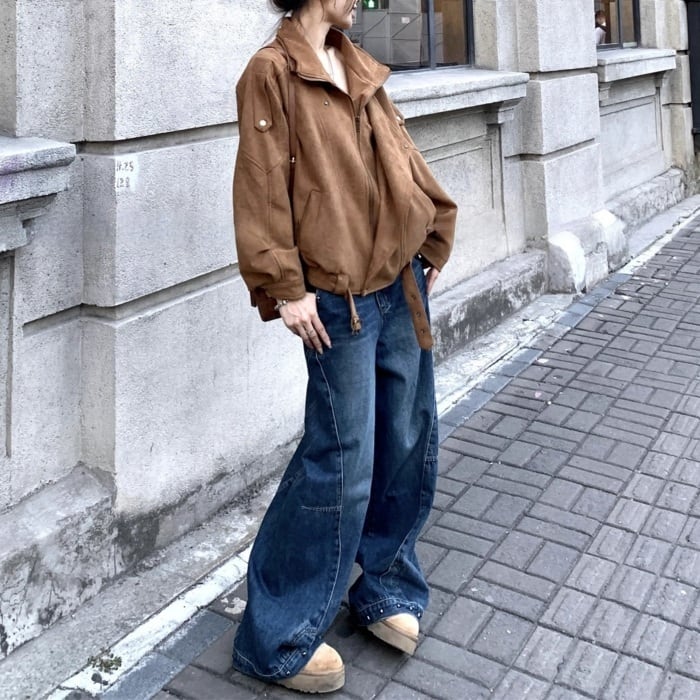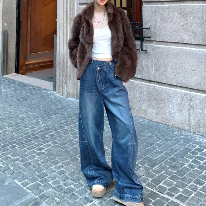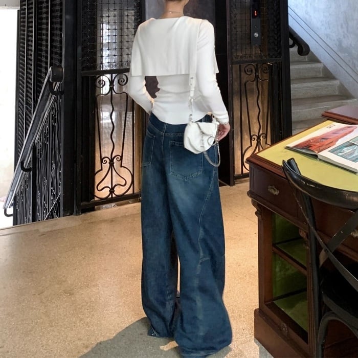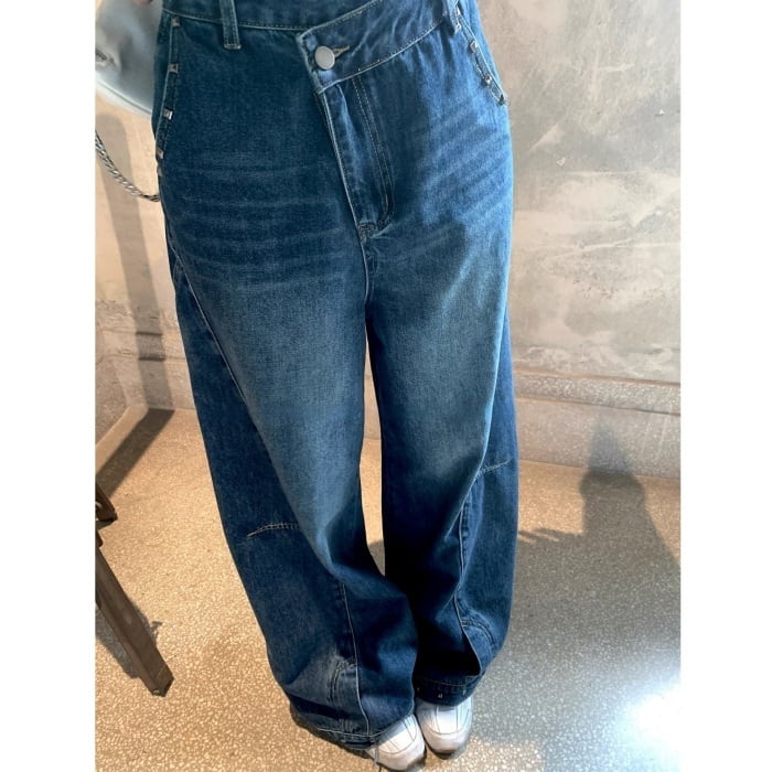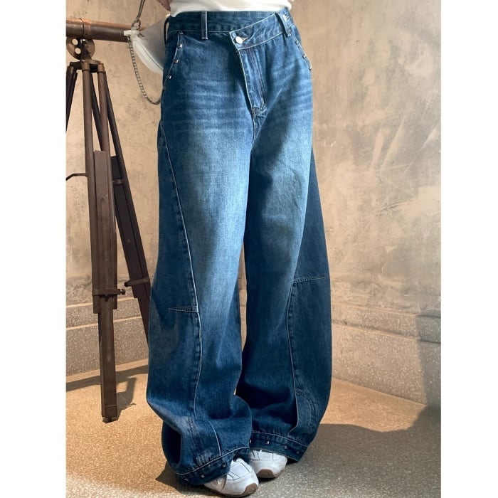 デコンストラクトスタッズカーブデニムパンツ[S-XL]