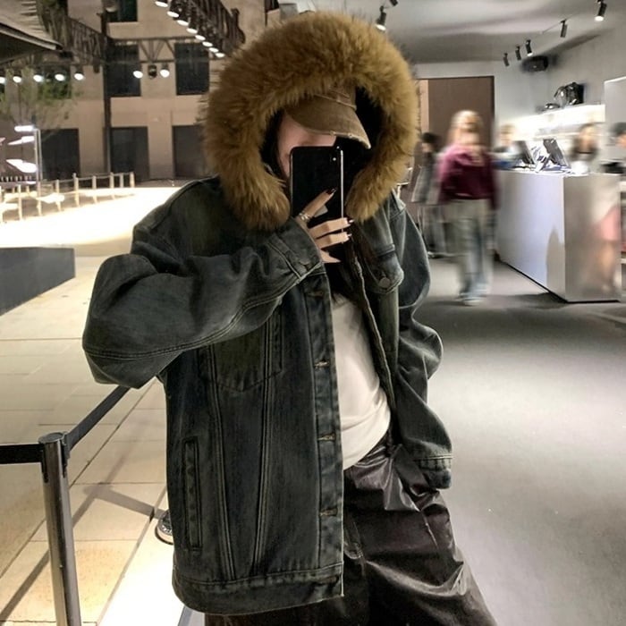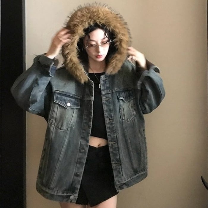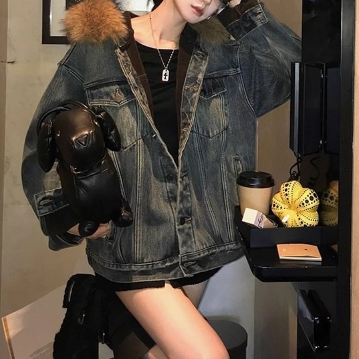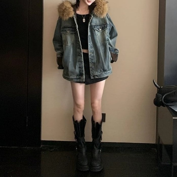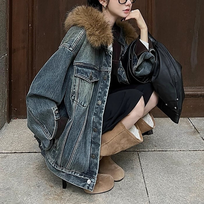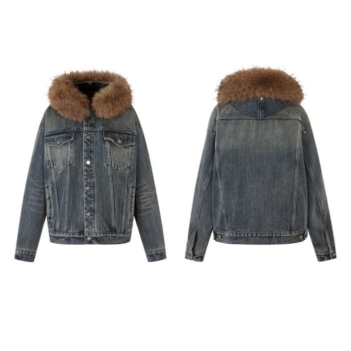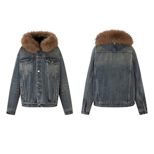 ヴィンテージファーカラーフリースデニムジャケット[XS-L]