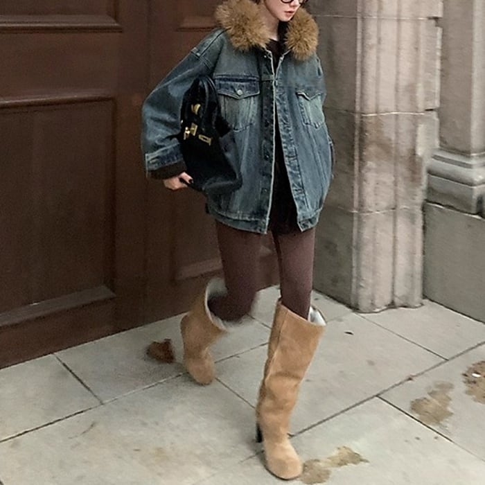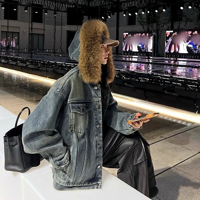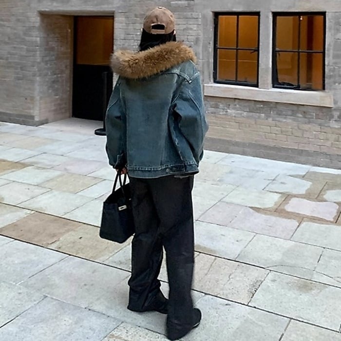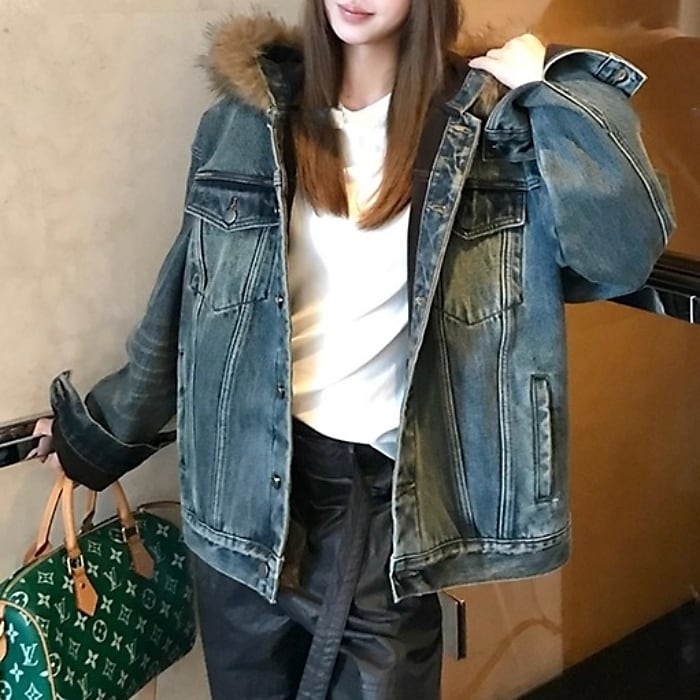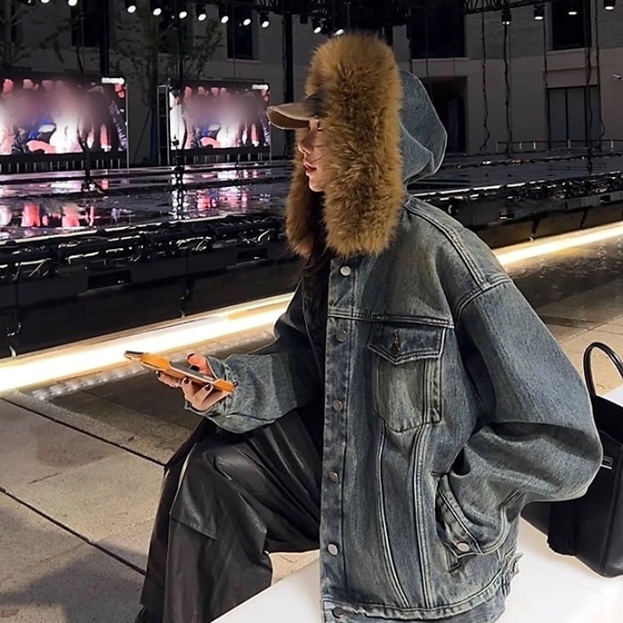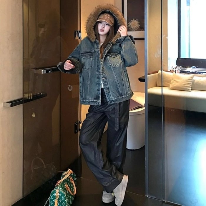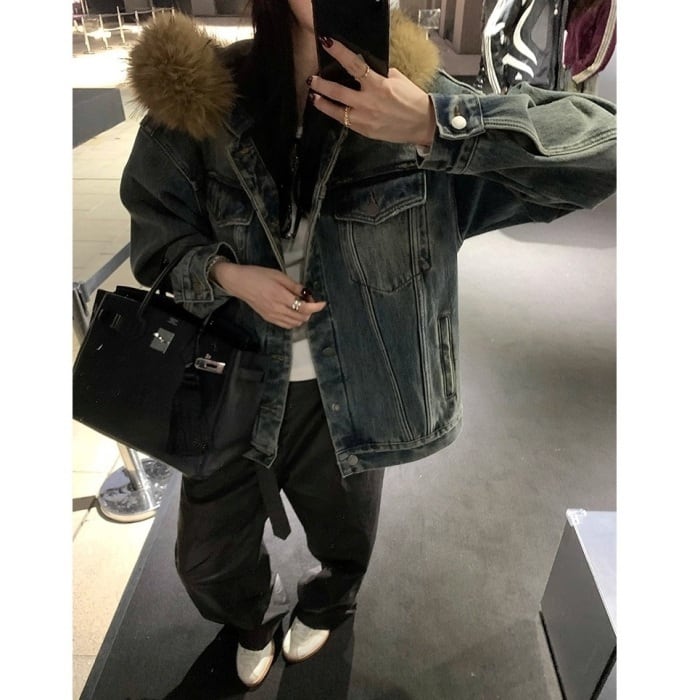 ヴィンテージファーカラーフリースデニムジャケット[XS-L]