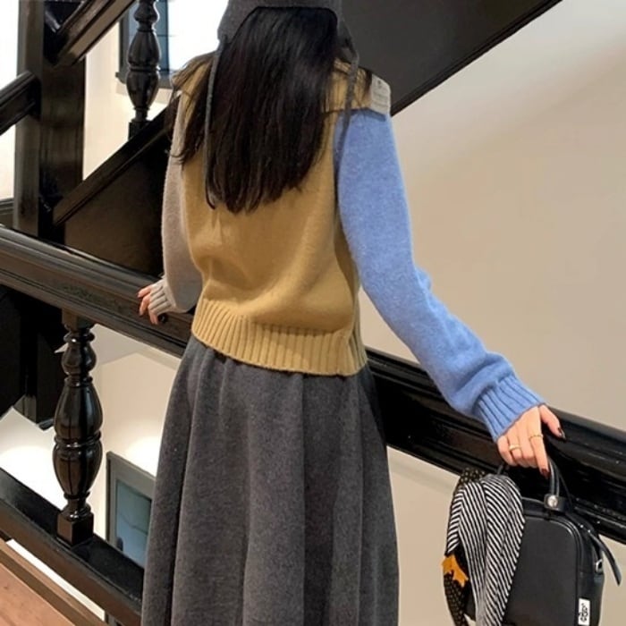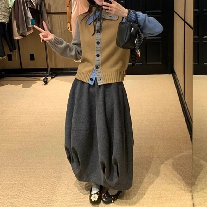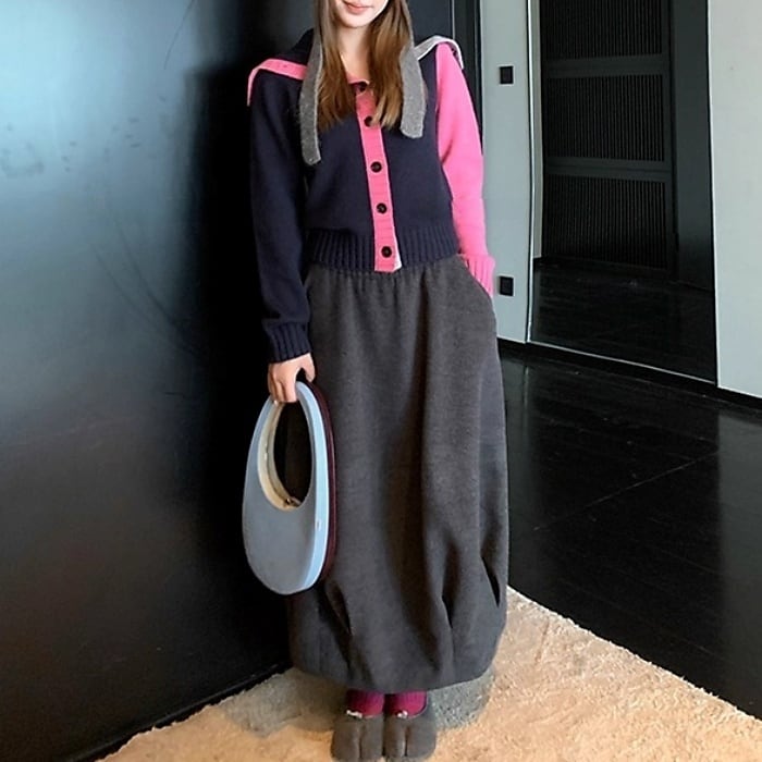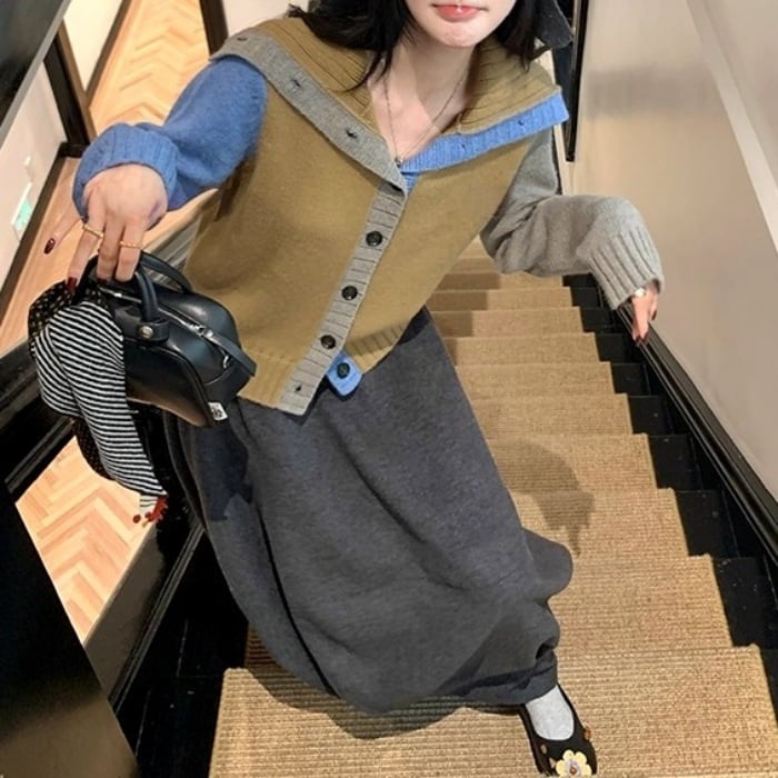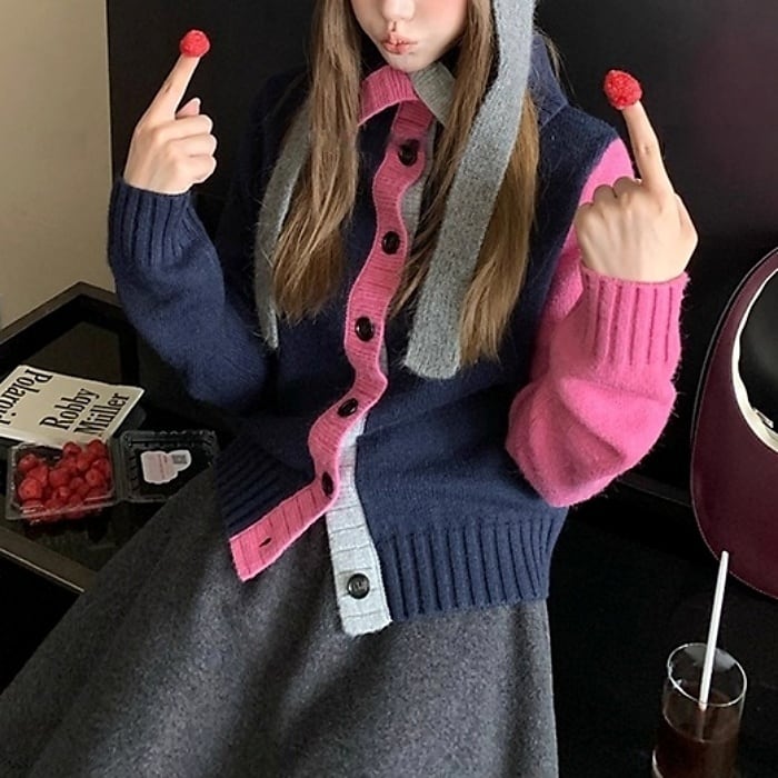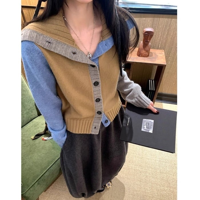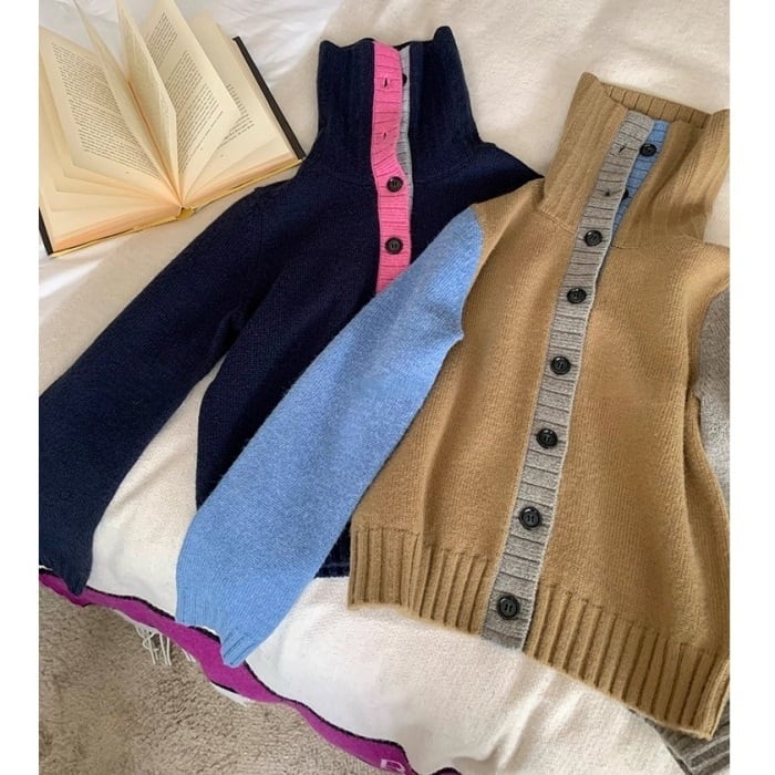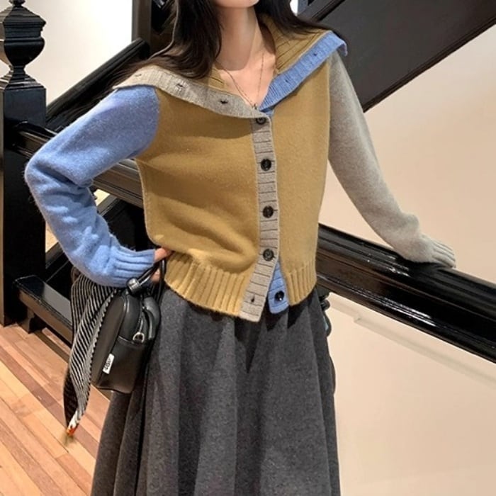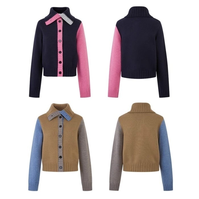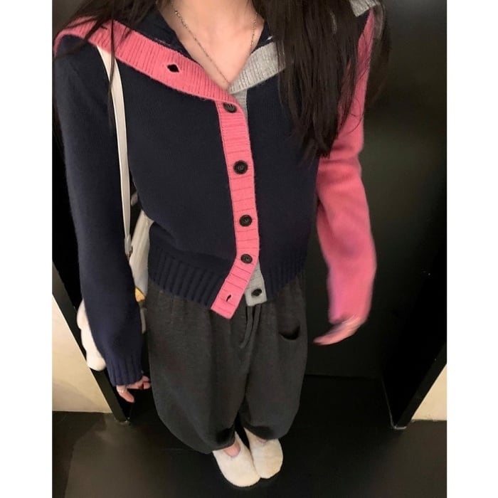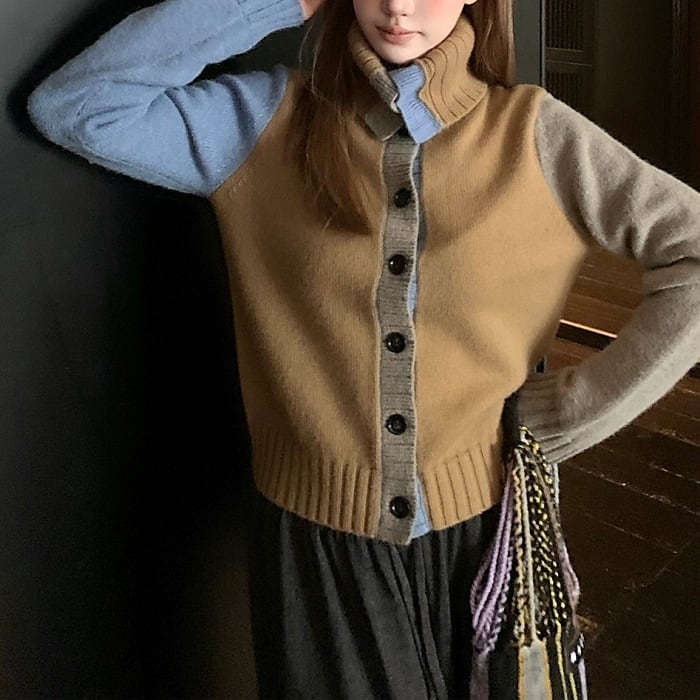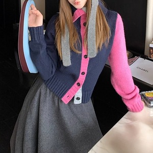 カラーブロックフロントボタンニットカーディガン[XS-L]