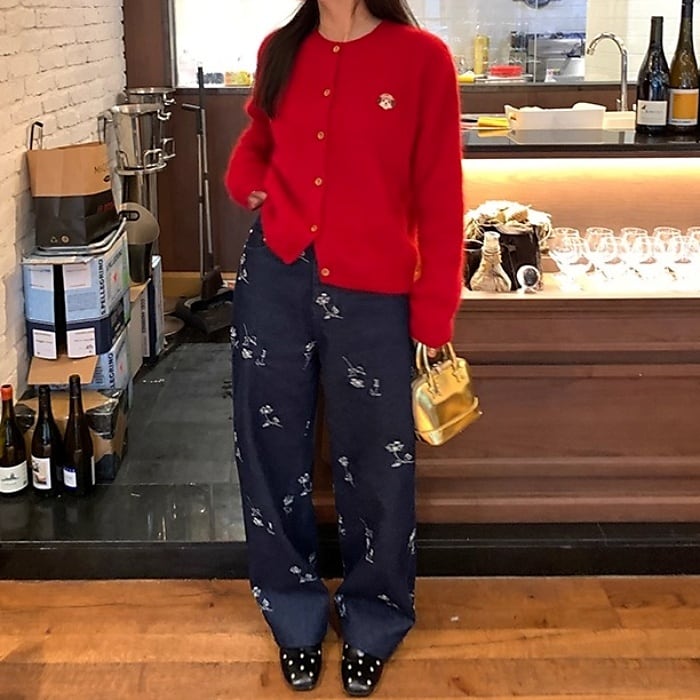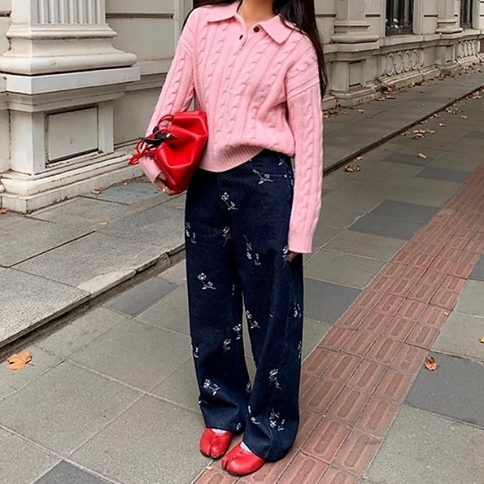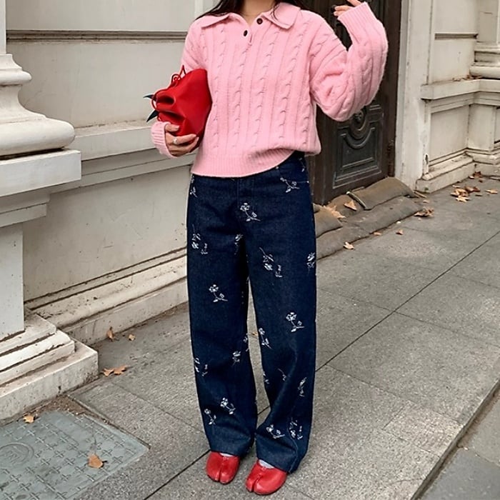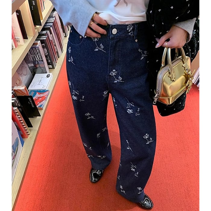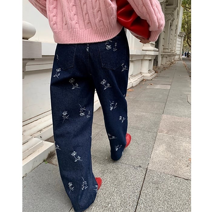 エンブロフラワーウォームストレートデニムパンツ[S-L]